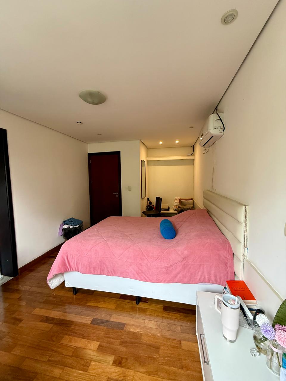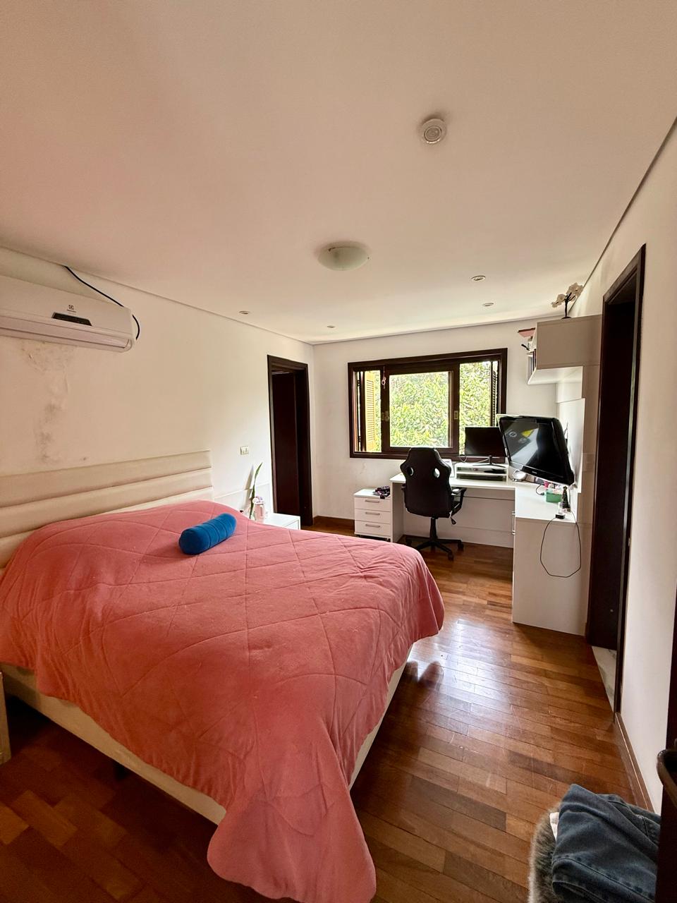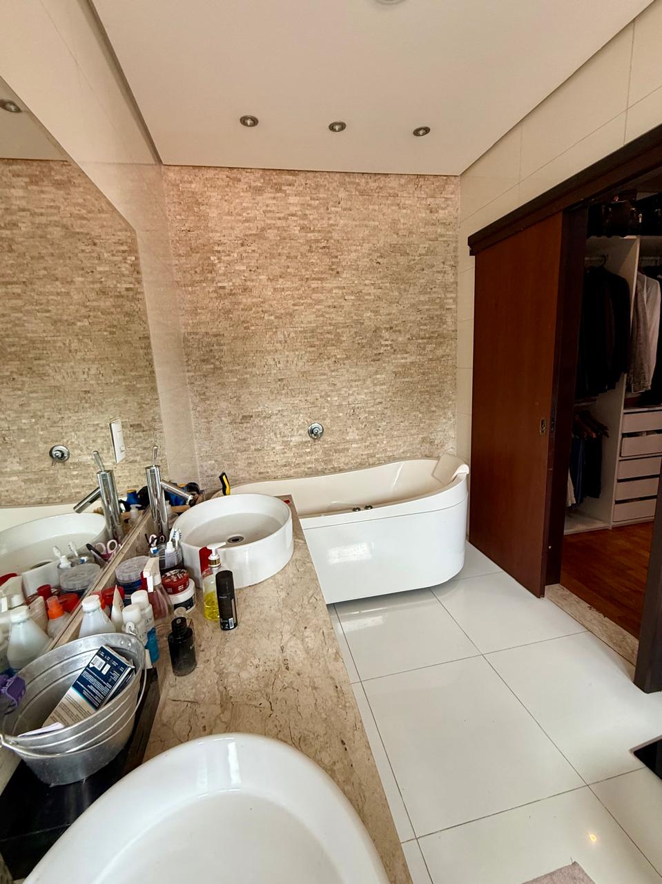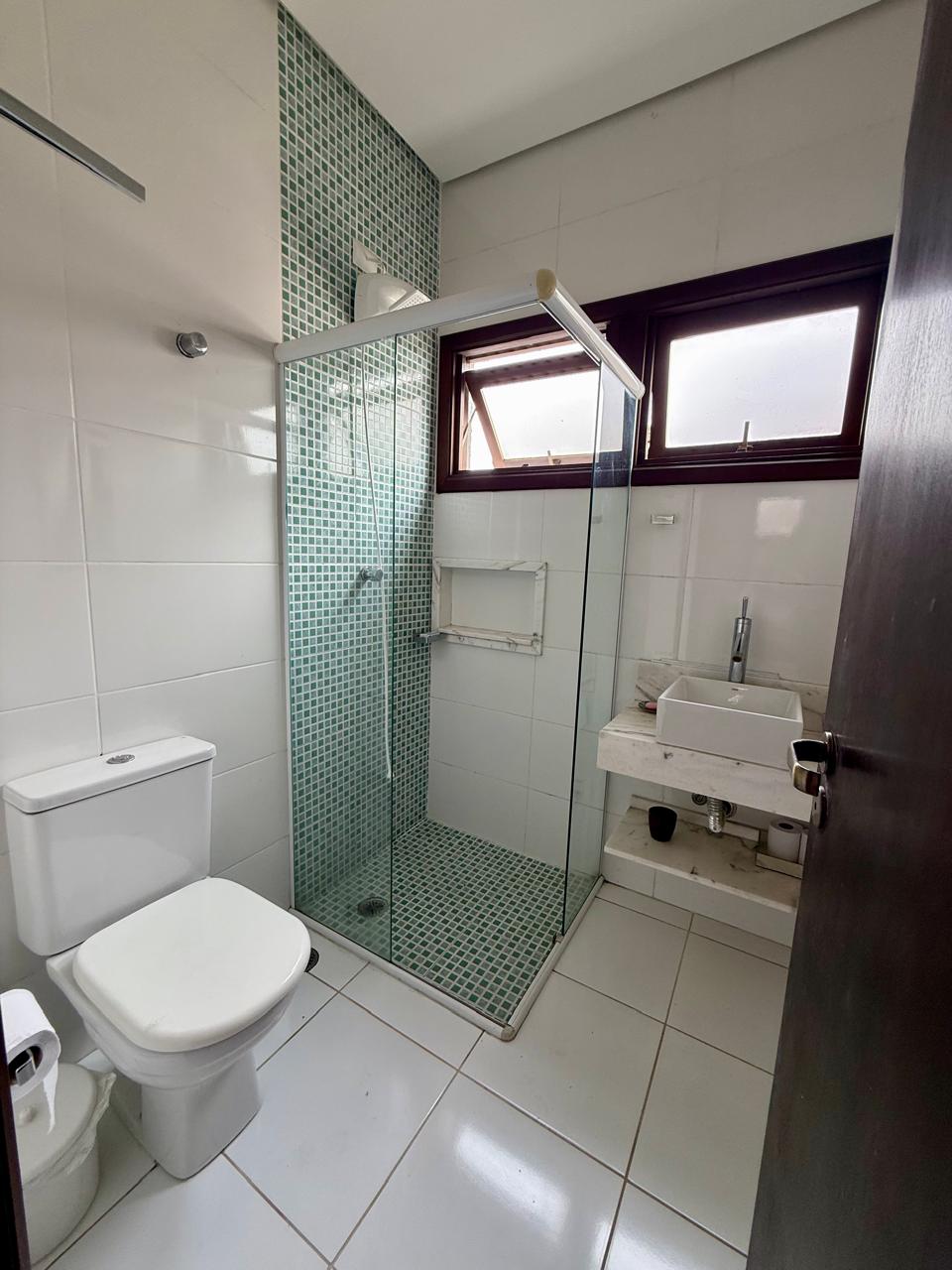Casa com 4 suítes sendo 1 no térreo e 01 suíte master com closet, móveis planejados, banheira, chuveiro duplo e terraço individualizado; mais 02 suítes com closet e móveis planejados; todas possuem ar-condicionado.