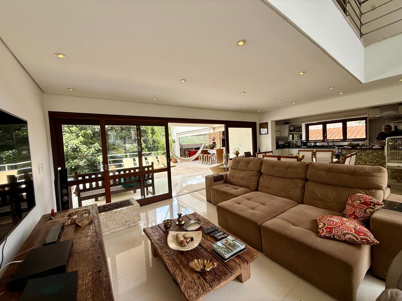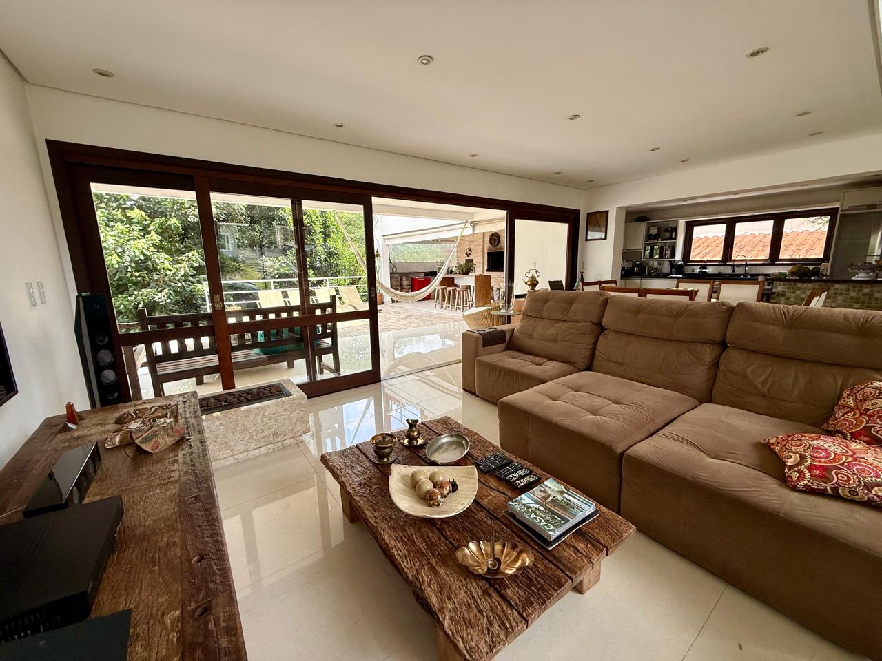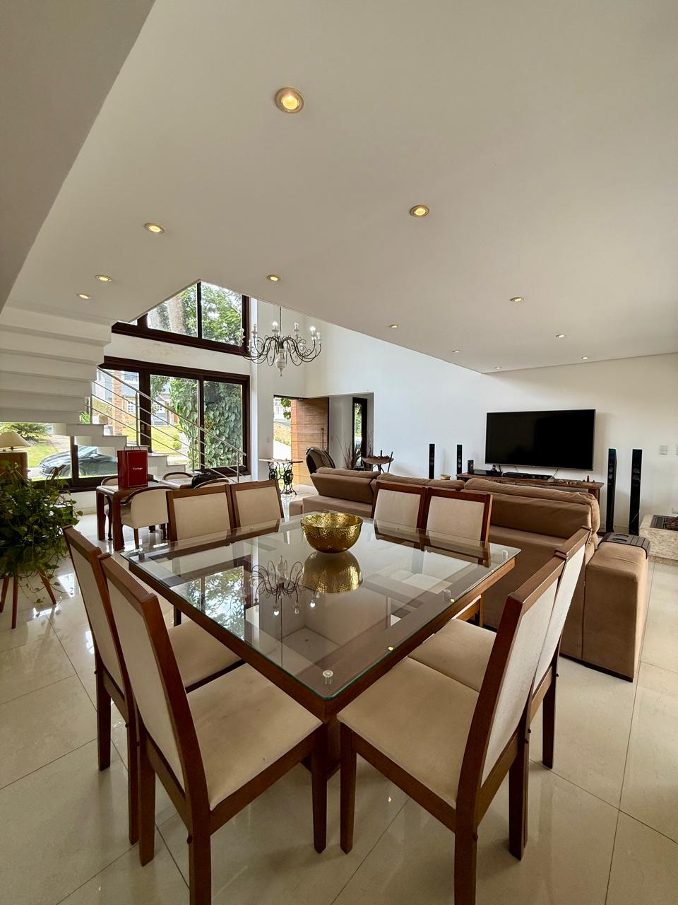 Cozinha americana planejada; Living formado por sala de estar, sala TV com Lareira a gás e sala jantar e Lavabo;