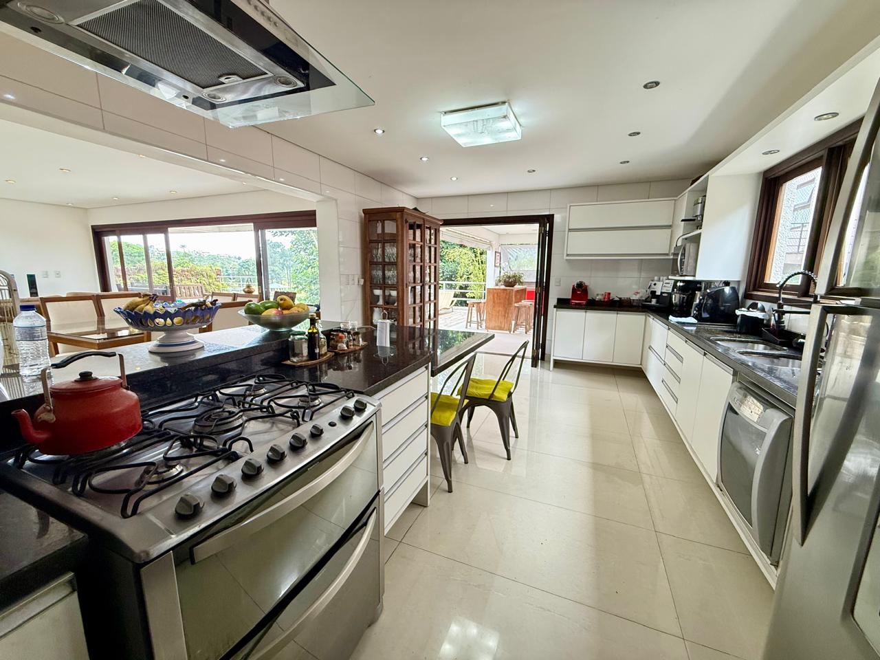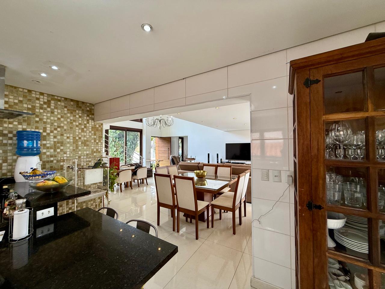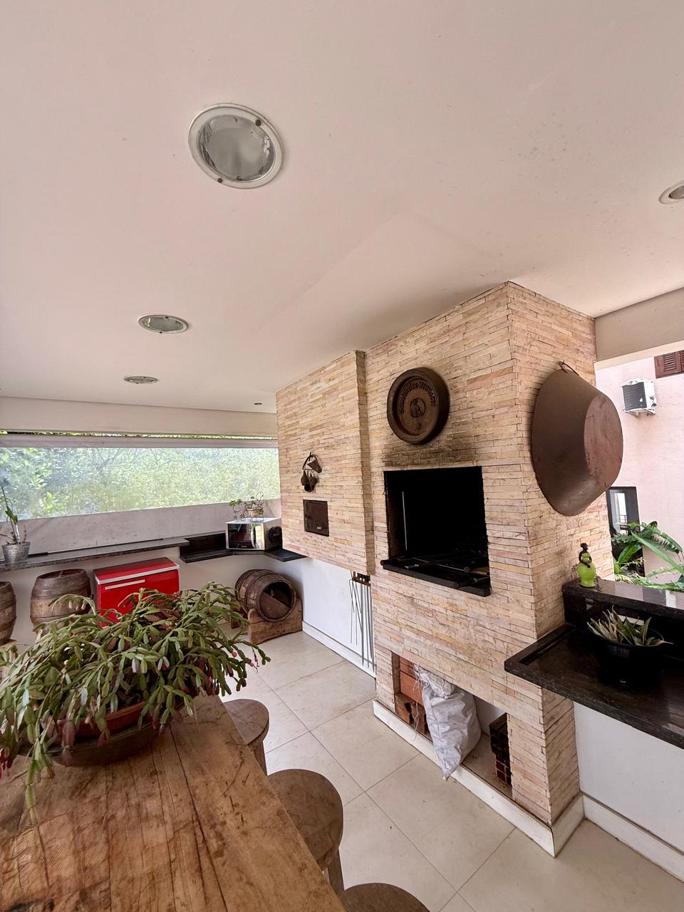 Cozinha americana planejada; Living formado por sala de estar, sala TV com Lareira a gás e sala jantar e Lavabo;