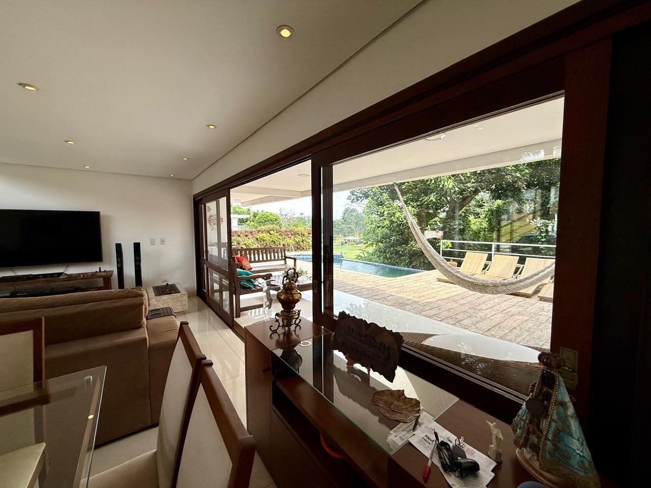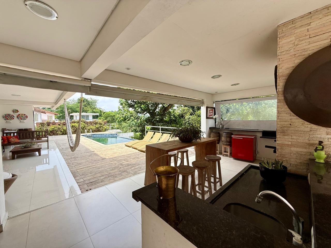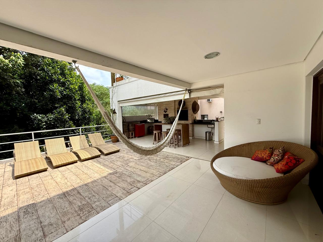 Espaço gourmet integrado com a cozinha, contando com churrasqueira e forno a lenha; Piscina borda infinita; belo espaço de quintal e área preparada para sauna e descanso de sauna; Lavanderia; Despensa; Rouparia;