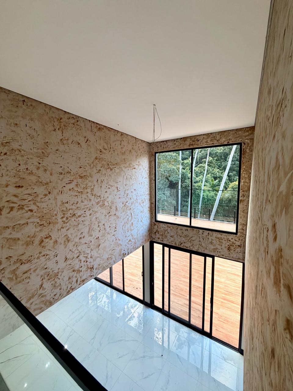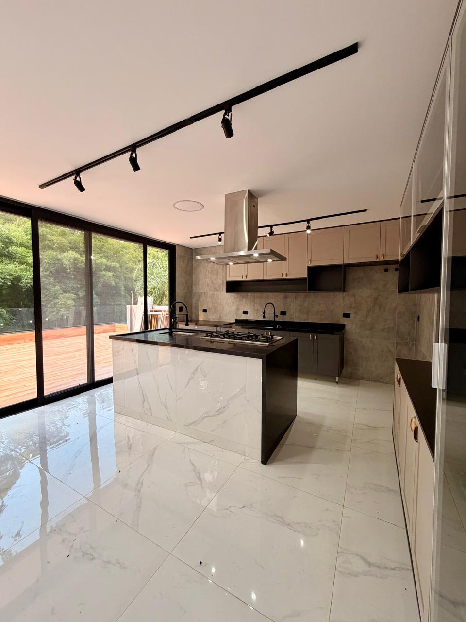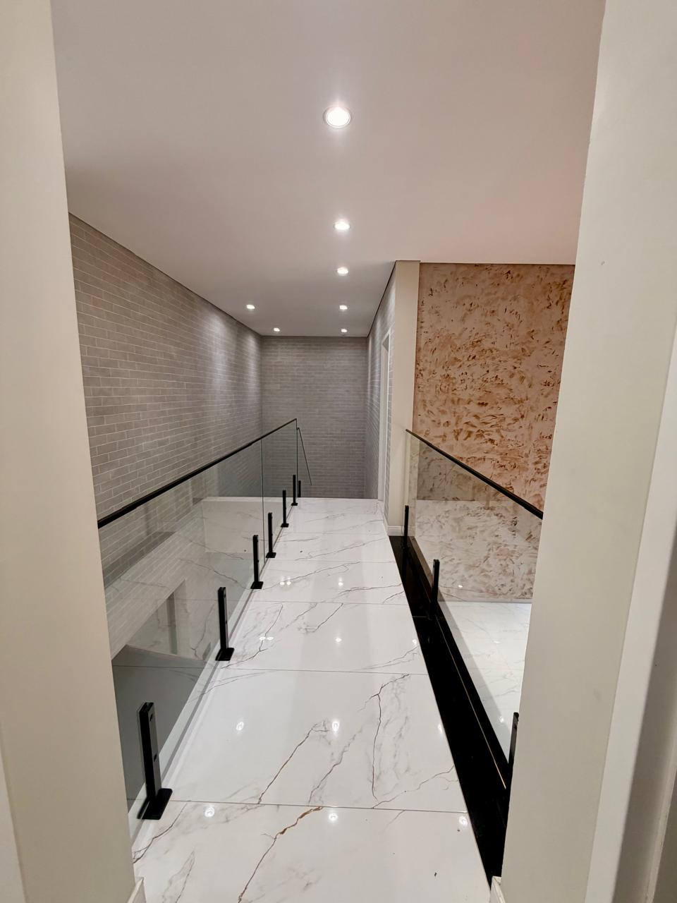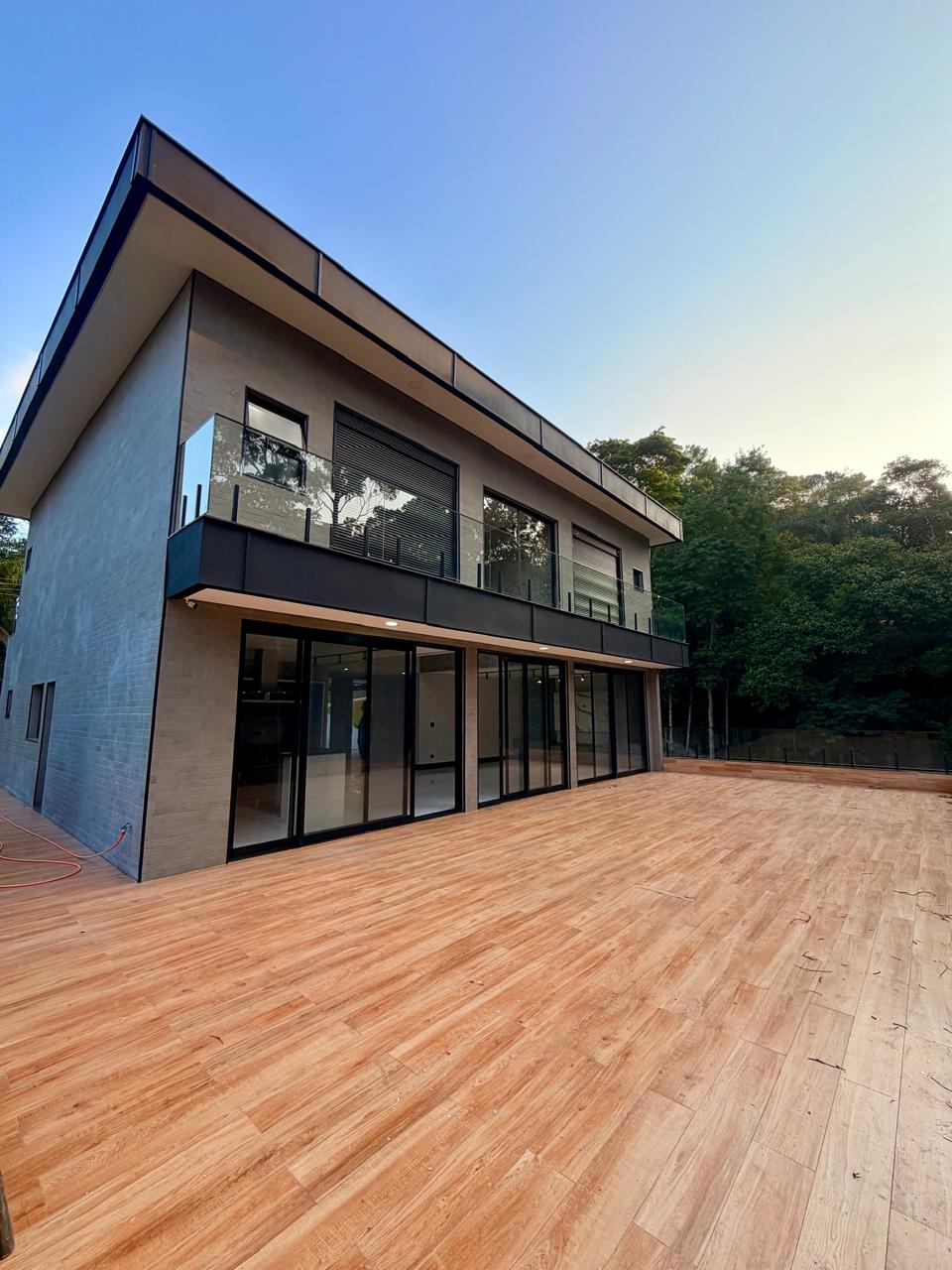A arquitetura prioriza o conforto térmico e a iluminação, com três suítes avarandadas que convidam ao descanso. A versatilidade é um pilar deste projeto, contando com um escritório no térreo que pode facilmente ser transformado em suíte de hóspedes, atendendo a diferentes configurações familiares. A cozinha, ponto central da casa, já conta com marcenaria sob medida e cooktop instalado, integrada à despensa e área social.