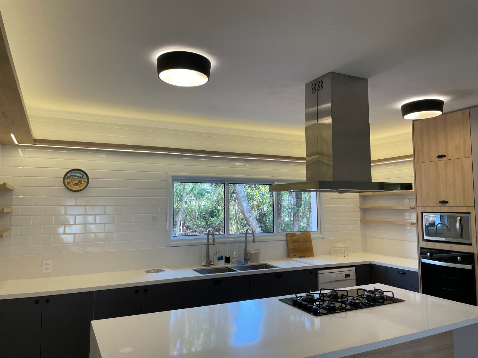 A infraestrutura de suporte no andar inferior é robusta, incluindo lavanderia, quarto de apoio (antigo serviço) com banheiro e 2 vagas de garagem cobertas. Na área externa, o potencial de entretenimento é elevado ao máximo com uma área gourmet completa equipada com forno de pizza e churrasqueira, de frente para a piscina, rodeada pelo verde característico do bairro.