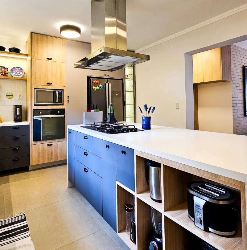 A arquitetura da residência foi pensada para o estilo de vida contemporâneo. A integração total entre a cozinha e as salas de estar e jantar cria um ambiente fluido, perfeito para receber convidados. O bar e o escritório garantem versatilidade para o dia a dia, separando o lazer do trabalho. A ala íntima conta com duas suítes confortáveis e um quarto adicional, atendido por um banheiro social completo, garantindo privacidade a todos os membros da família.