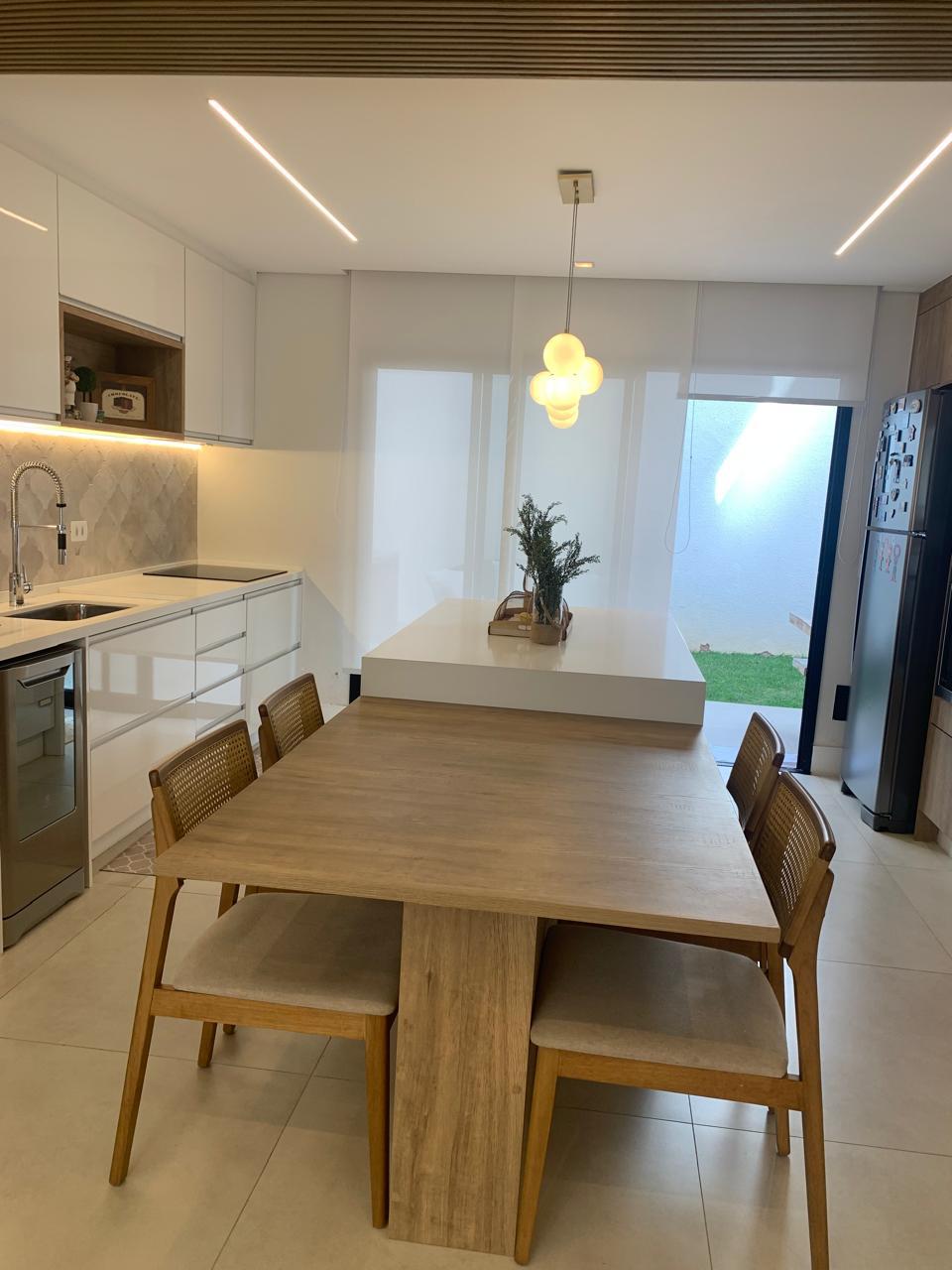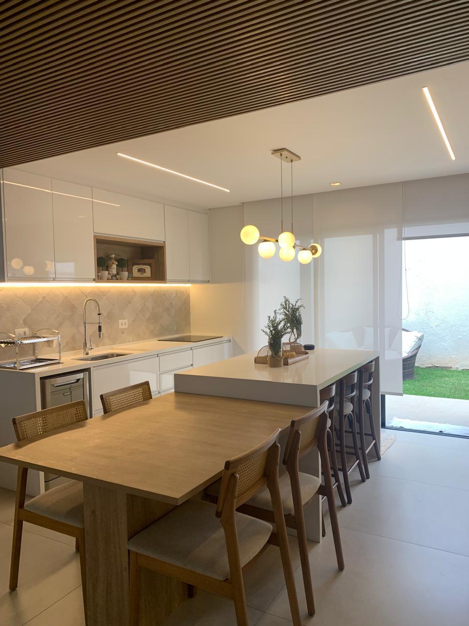 No pavimento térreo, o imóvel oferece cozinha totalmente equipada, integrada à sala de jantar e à sala de estar, criando um espaço funcional e acolhedor. A área externa conta com jardim privativo e espaço gourmet com churrasqueira, ideal para momentos de convivência. Lavabo e lavanderia completam o andar.
