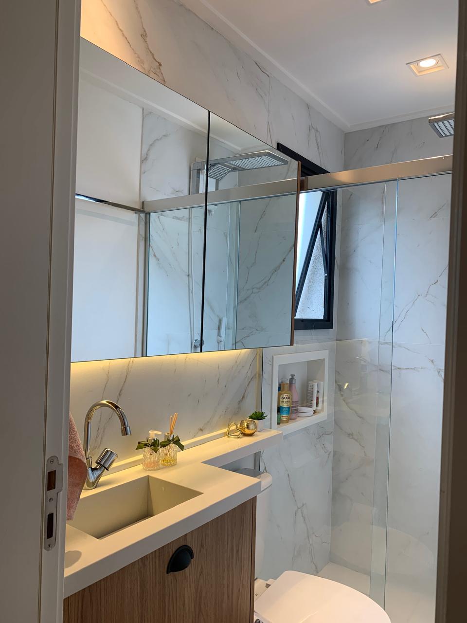 No primeiro pavimento estão os dormitórios, sendo uma suíte e dois quartos, todos com armários planejados. Os banheiros possuem box, espelhos e armários. Há ainda roupeiro no corredor, otimizando a organização.