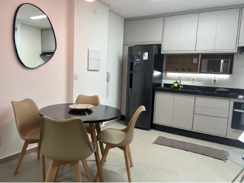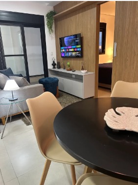 O apartamento foi planejado com móveis e equipamentos de alto padrão, pensado para quem busca entrar e morar sem nenhuma preocupação. Conta com ar-condicionado, TVs, geladeira, cooktop, forno elétrico, micro-ondas, lava e seca, exaustor, além de cafeteira, grill, panelas, talheres, pratos e copos. Também dispõe de jogos completos de cama e banho, ferro de passar, chuveiro, varal embutido e fechadura eletrônica, oferecendo máximo conforto e praticidade.