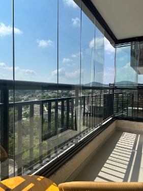 A varanda ampla, com fechamento em vidro e persianas, proporciona um ambiente aconchegante e uma vista encantadora para o parque, perfeita para momentos de descanso. O imóvel conta ainda com 1 vaga de garagem.