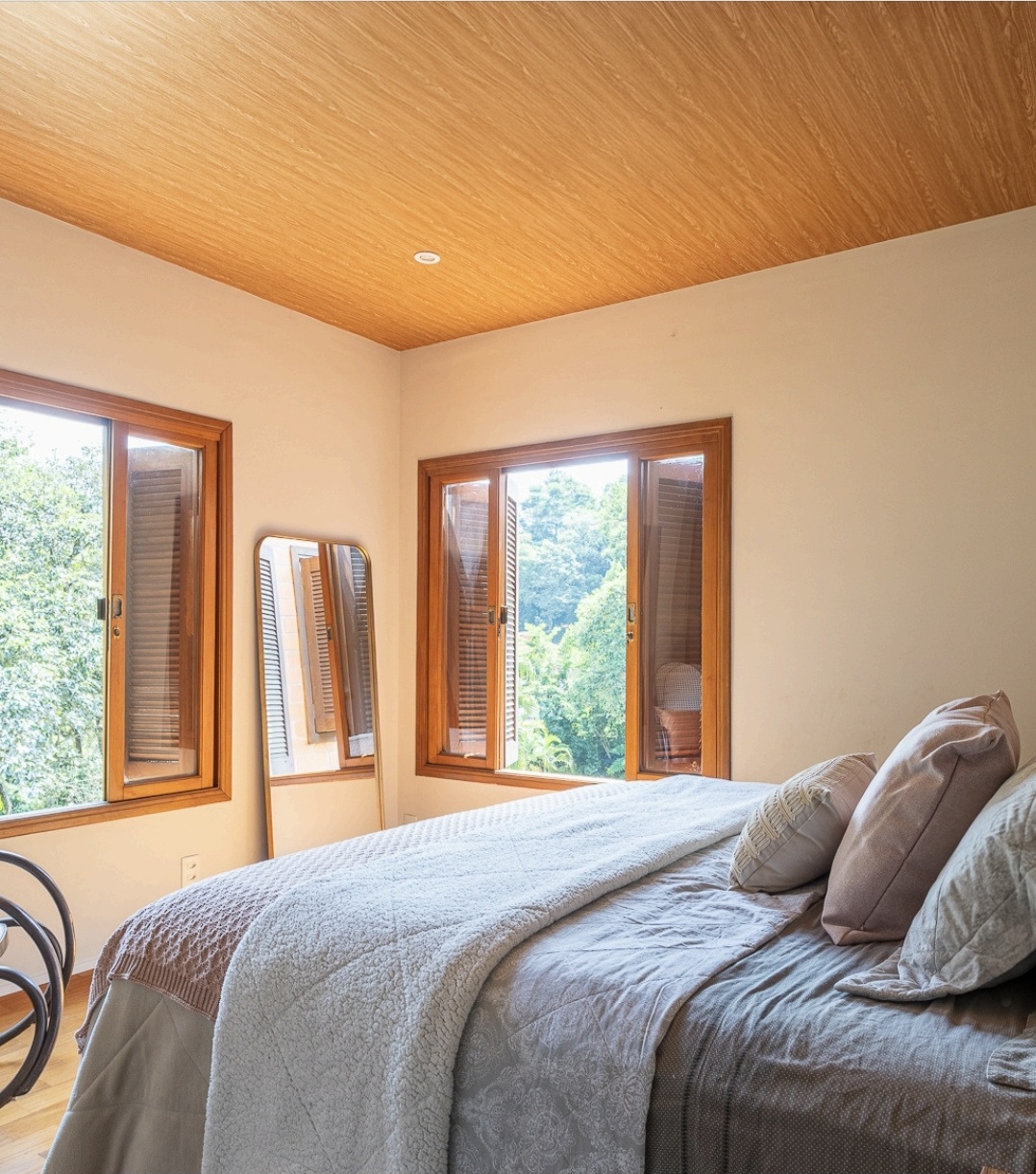 Disponível para locação, esta propriedade única na Granja Viana foi projetada para famílias que priorizam a saúde física, mental e emocional. Inserida em um terreno de 882,50m² com vista permanente para o verde, a residência promove uma conexão profunda com a natureza sem abrir mão da sofisticação técnica e do conforto térmico, contando com ar-condicionado em todos os quartos e escritórios.