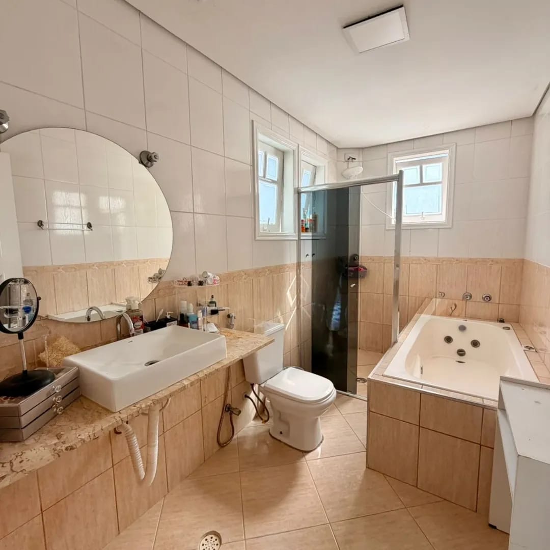 A área social é composta por salas de estar e jantar distintas, permitindo diferentes configurações de recepção, além de uma sala íntima ideal para o convívio reservado da família. Na ala privativa, as três suítes surpreendem pelo espaço, todas contando com closets planejados. A suíte principal é um diferencial à parte, oferecendo uma Jacuzzi que transforma o banheiro em um spa particular. A área externa foi projetada para o lazer total, com uma área gourmet integrada à piscina, garantindo momentos inesquecíveis de descontração.