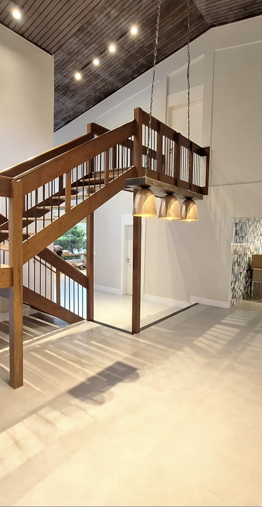 A casa conta com 4 suítes espaçosas, sendo uma delas com banheira, todas com excelente acabamento e móveis planejados que valorizam cada ambiente. Os espaços sociais são integrados, bem ventilados e com ótima entrada de luz natural, proporcionando conforto térmico e visual ao longo do dia. Possui ainda lavabo e banheiro social, atendendo perfeitamente às áreas comuns.