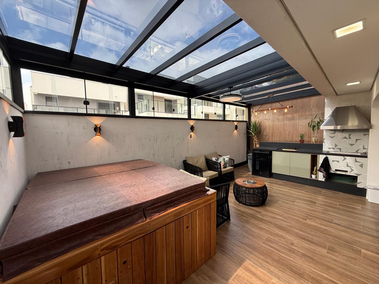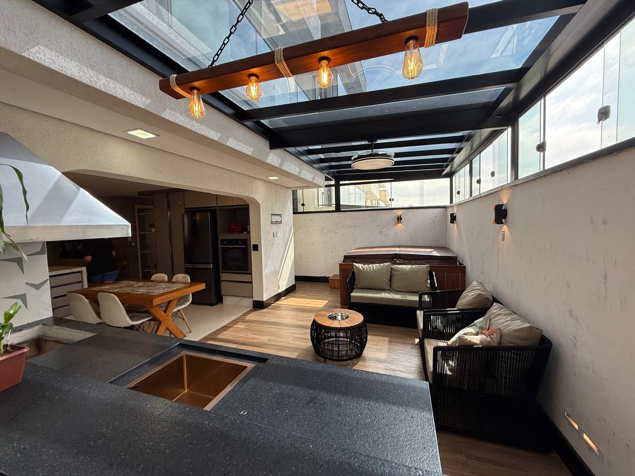 A planta foi desenhada para promover a convivência, destacando-se as salas de estar e jantar que se conectam harmonicamente. A área íntima é composta por 3 dormitórios, sendo 2 suítes generosas, garantindo privacidade e conforto para toda a família. A Área Gourmet com cobertura retrátil privativa com churrasqueira a carvão e a banheira de hidromassagem elevam o padrão de bem-estar deste imóvel.