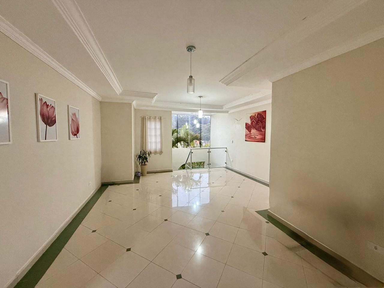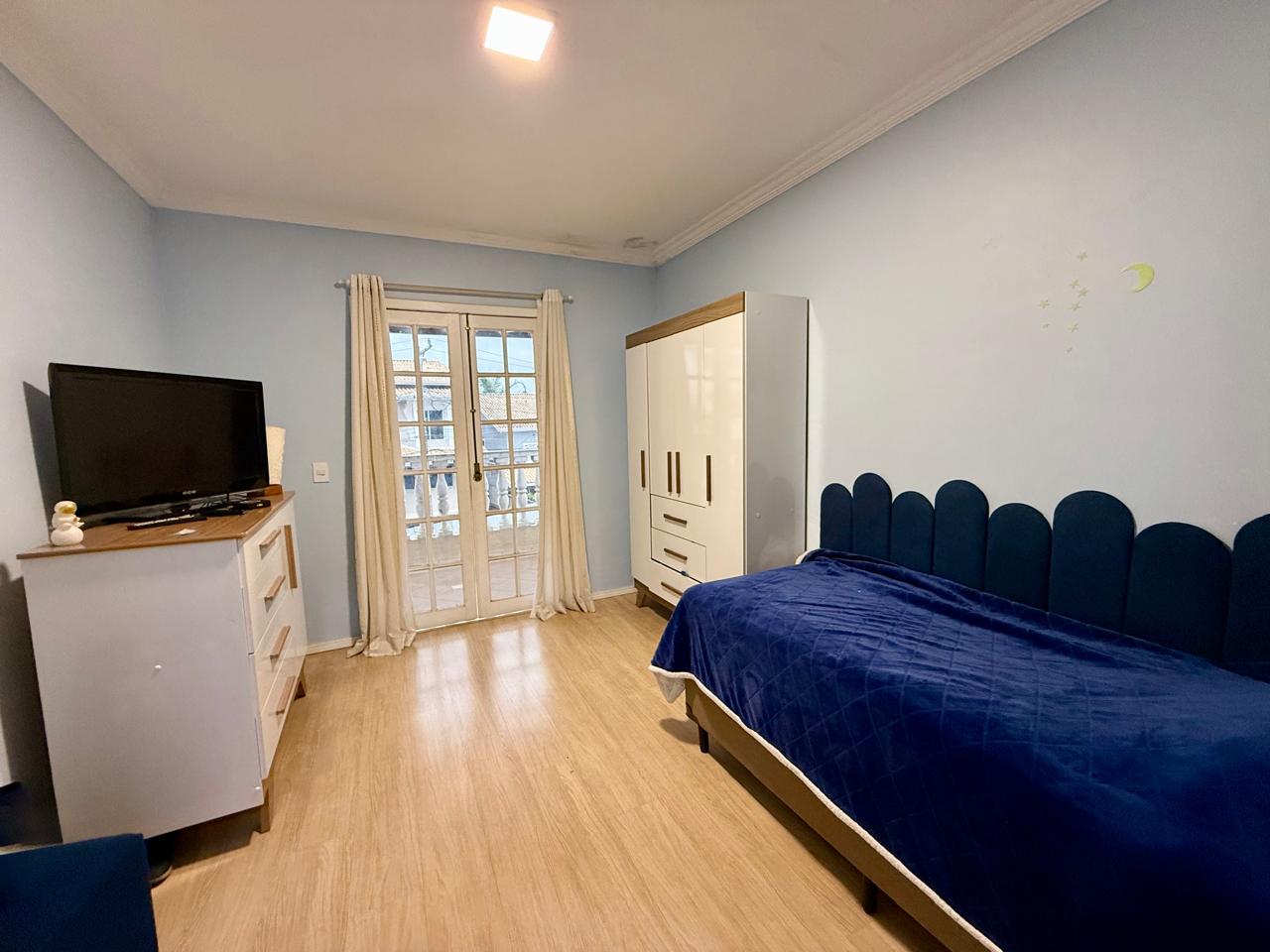 No pavimento superior, há dormitórios bem iluminados, alguns com sacada, banheiro social e uma confortável sala de TV, garantindo privacidade e praticidade no dia a dia.