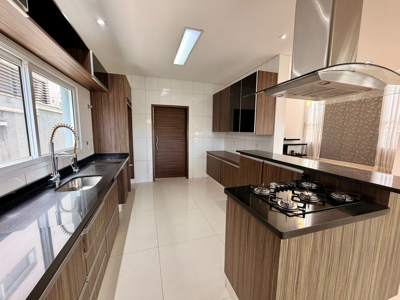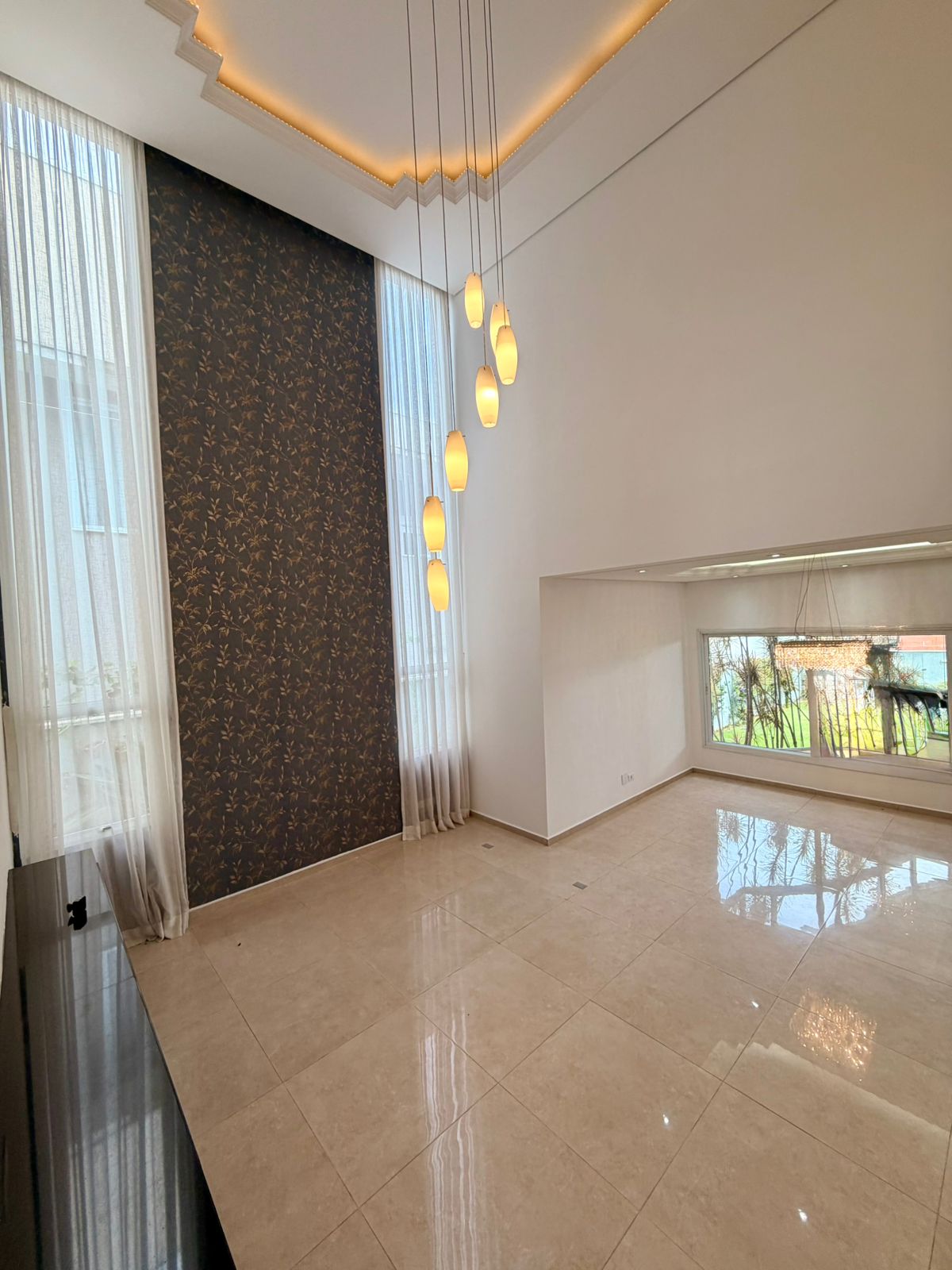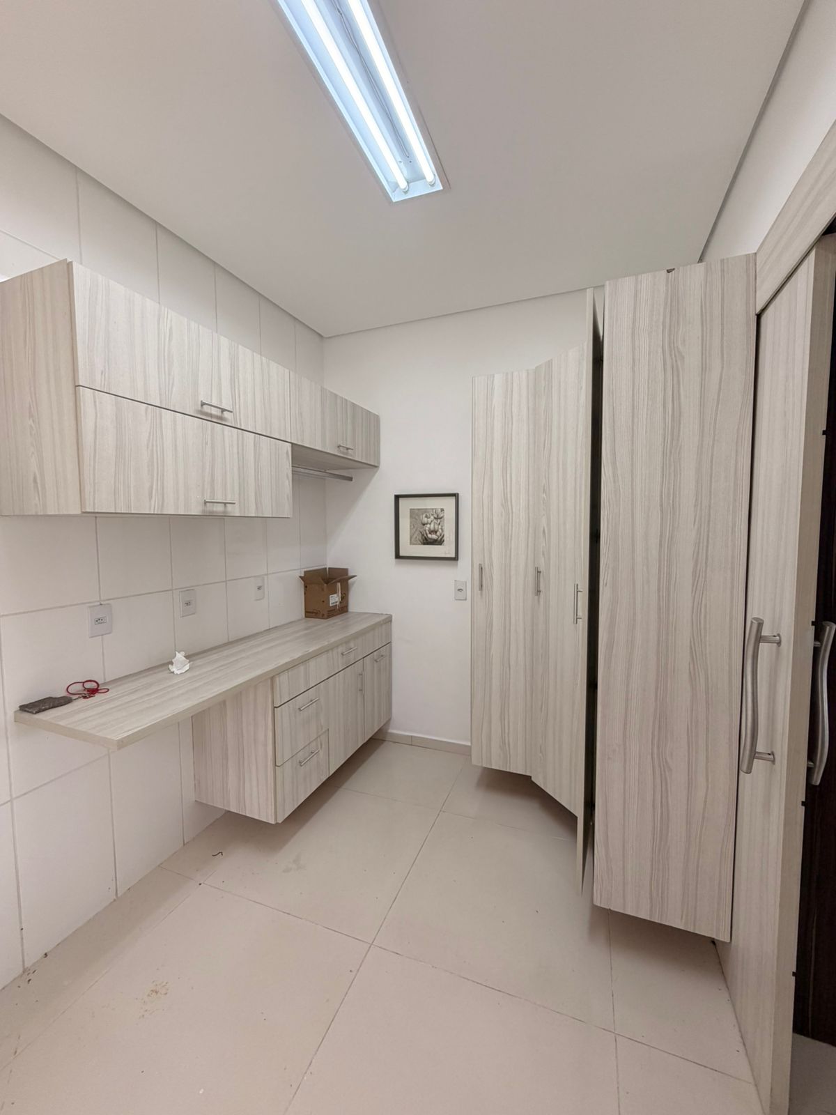 A área social conta com sala de estar e sala de jantar espaçosas, valorizadas por um elegante projeto de iluminação. A cozinha é totalmente planejada, repleta de armários, oferecendo praticidade e organização para o dia a dia. O imóvel ainda dispõe de lavanderia independente e vestiário, garantindo mais comodidade.