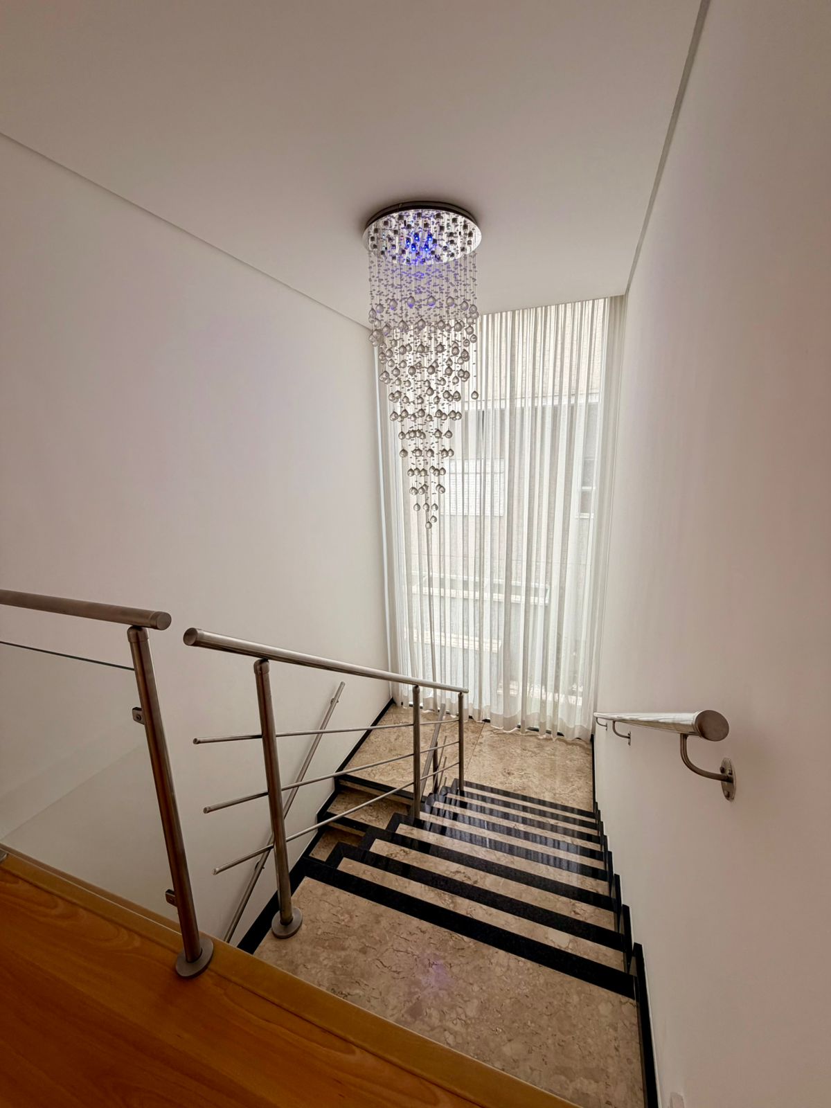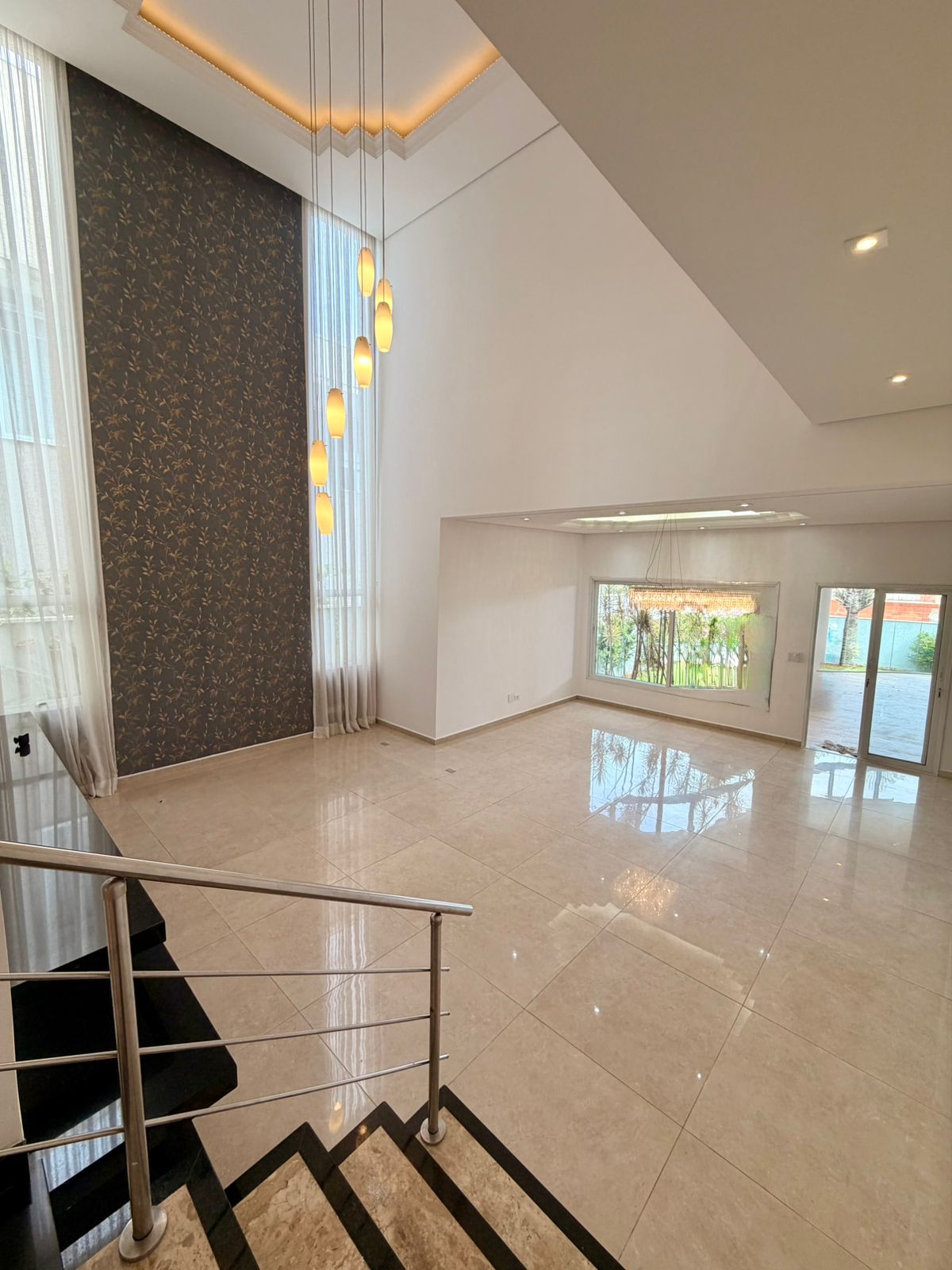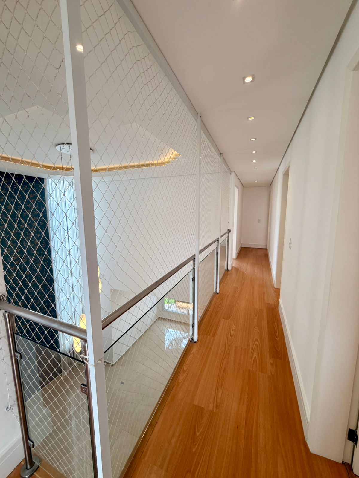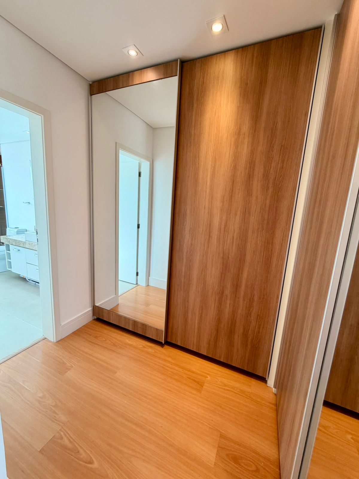 A área social conta com sala de estar e sala de jantar espaçosas, valorizadas por um elegante projeto de iluminação. A cozinha é totalmente planejada, repleta de armários, oferecendo praticidade e organização para o dia a dia. O imóvel ainda dispõe de lavanderia independente e vestiário, garantindo mais comodidade.
