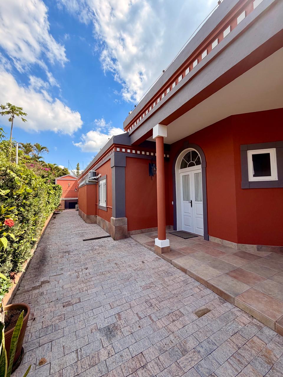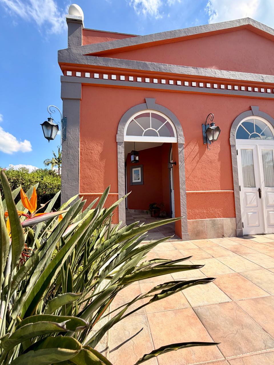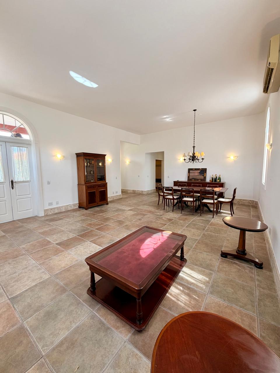 Esta residência redefine o conceito de morar bem, unindo o charme de uma casa térrea à imponência de um dos endereços mais cobiçados de Cotia. Ao cruzar a rampa de acesso que leva à entrada principal, percebe-se o cuidado em cada detalhe, desde a varanda frontal com vista panorâmica até o acabamento impecável em piso de pedra que percorre todos os ambientes sociais.