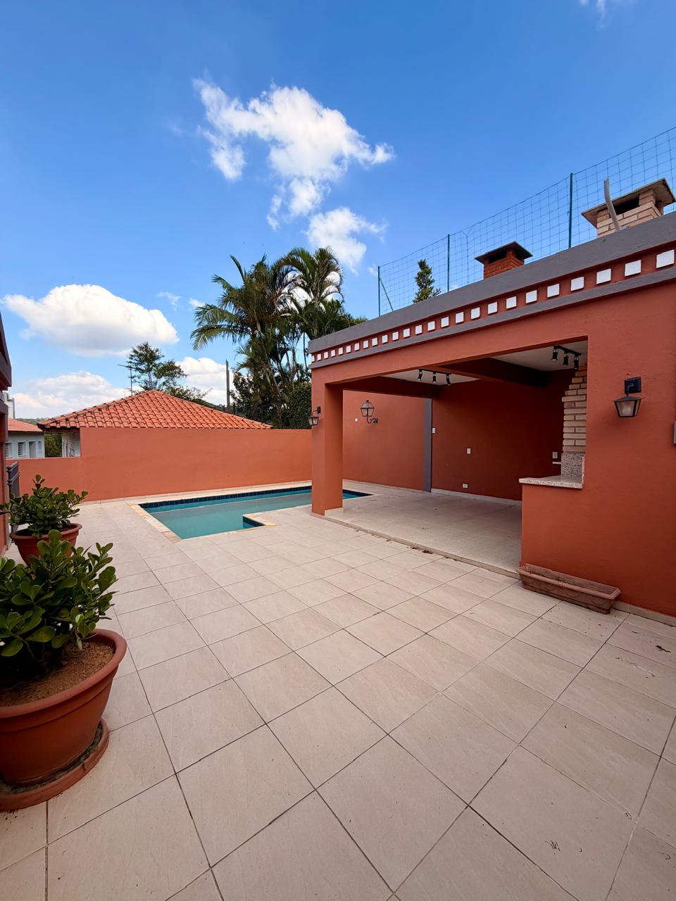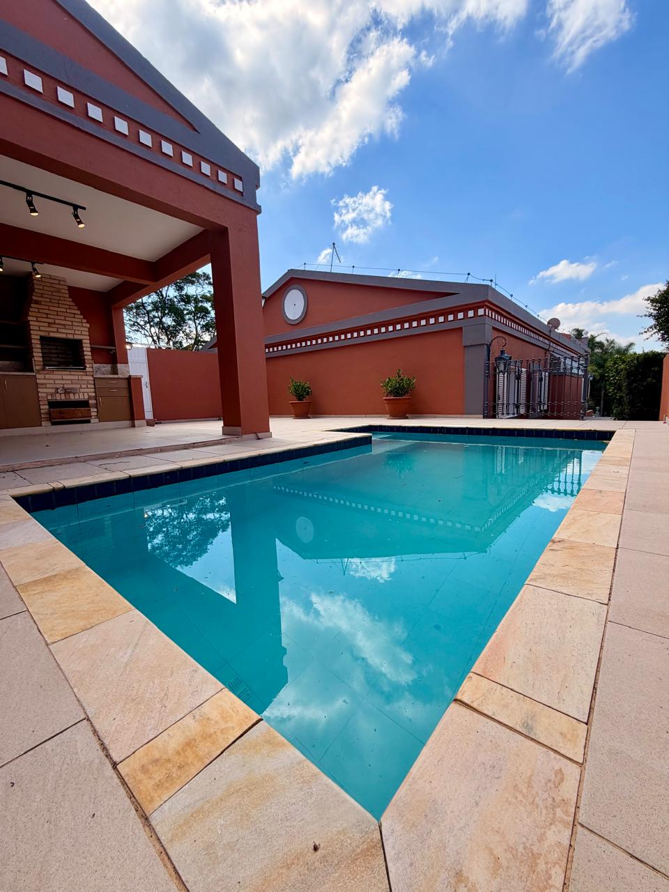 Na área externa, o lazer é privativo e completo, com piscina, solarium e espaço gourmet com churrasqueira. Um diferencial relevante é a suíte de funcionários, que possui padrão para ser revertida em uma confortável suíte de hóspedes.