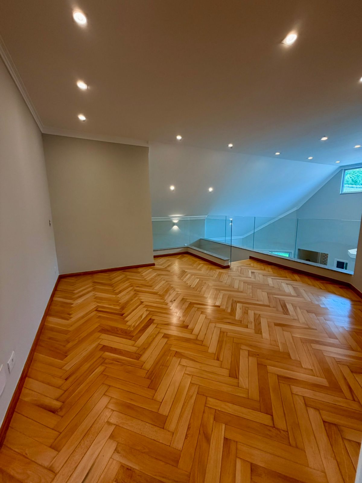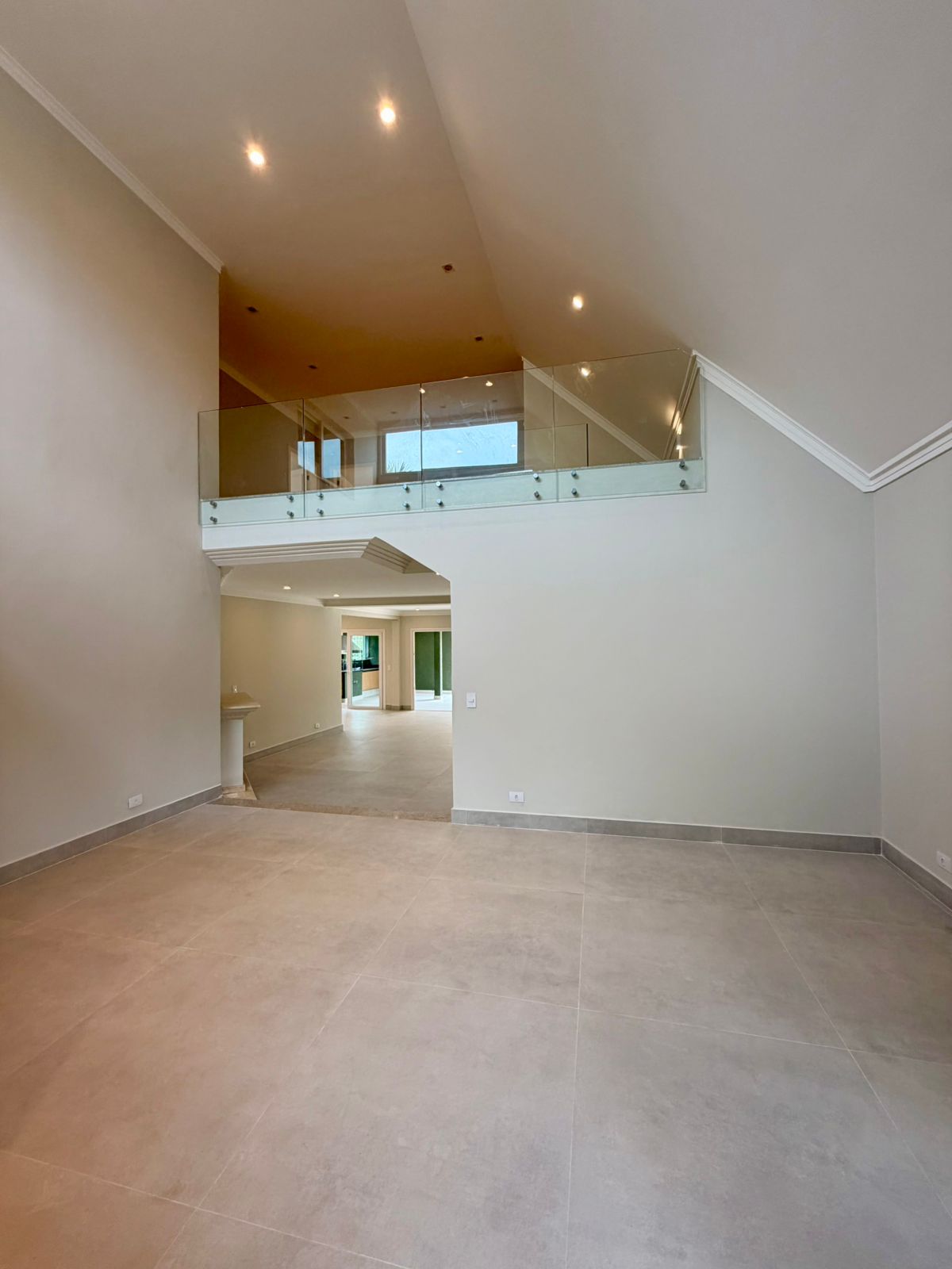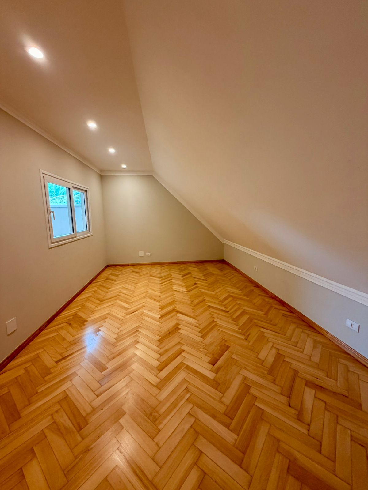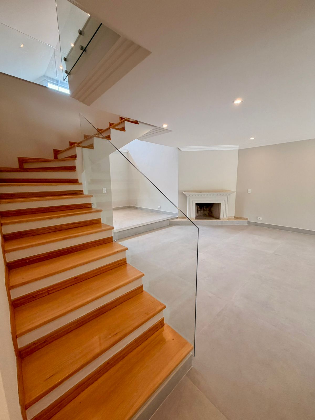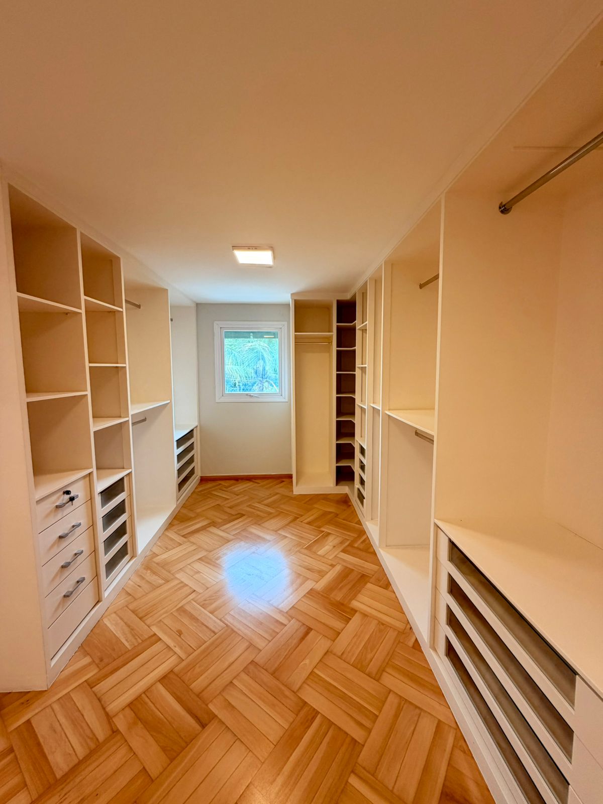 O grande diferencial deste projeto é a disposição das suítes. Com três delas localizadas no andar inferior, o imóvel torna-se extremamente acessível e confortável. No andar superior, a versatilidade impera: uma sala adicional e um ambiente de estudos/ateliê oferecem o refúgio necessário para hobbies ou foco profissional. A cozinha é um capítulo à parte, entregue totalmente equipada com eletrodomésticos embutidos e marcenaria sob medida de primeira linha.
