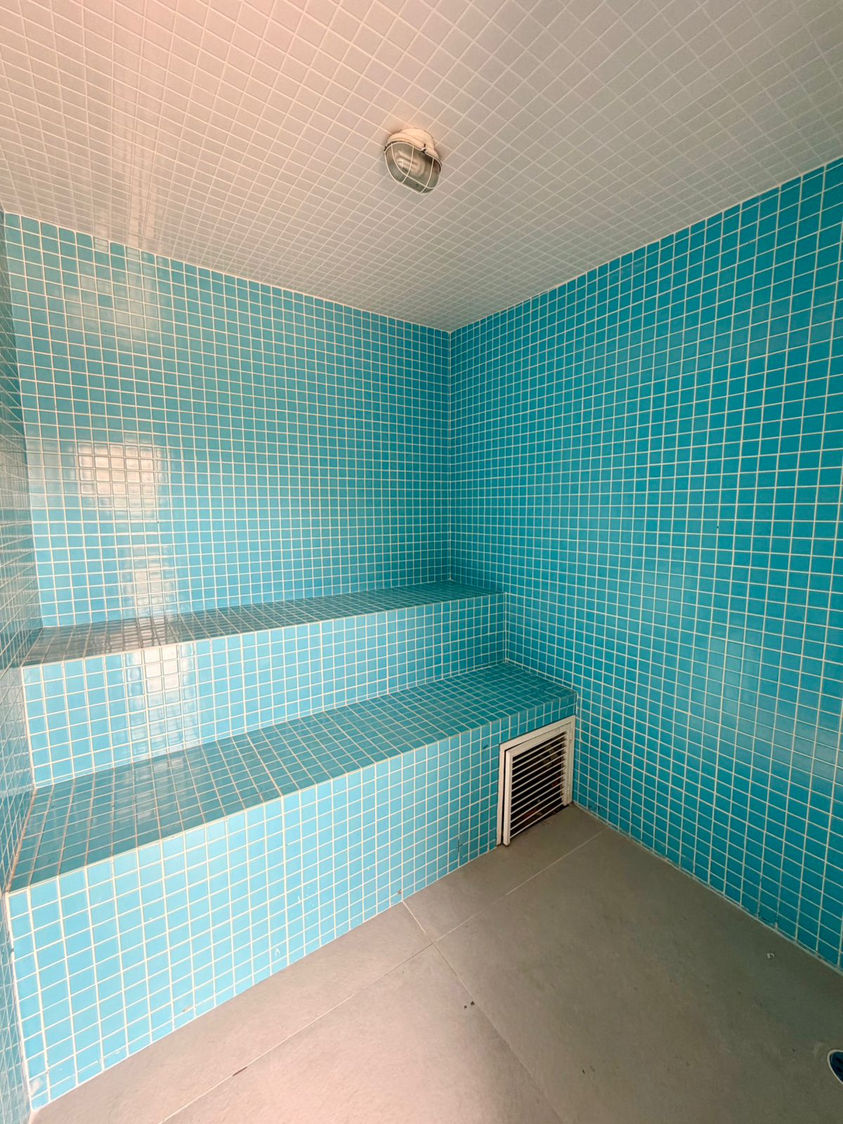 A área externa foi projetada para o entretenimento. O espaço gourmet conecta-se harmoniosamente à piscina e à sauna, criando um ambiente de resort particular dentro de casa. Com 507 m² de construção, cada metro quadrado foi pensado para transmitir solidez e elegância.