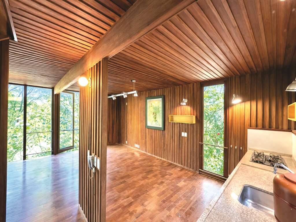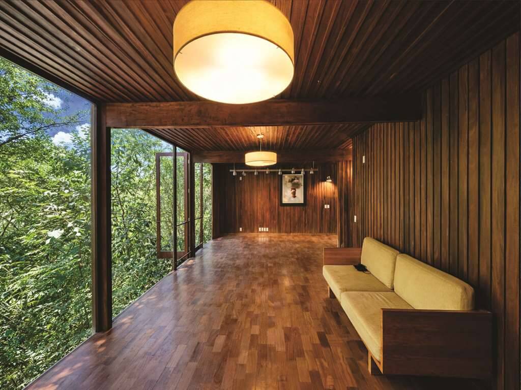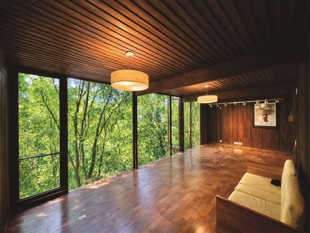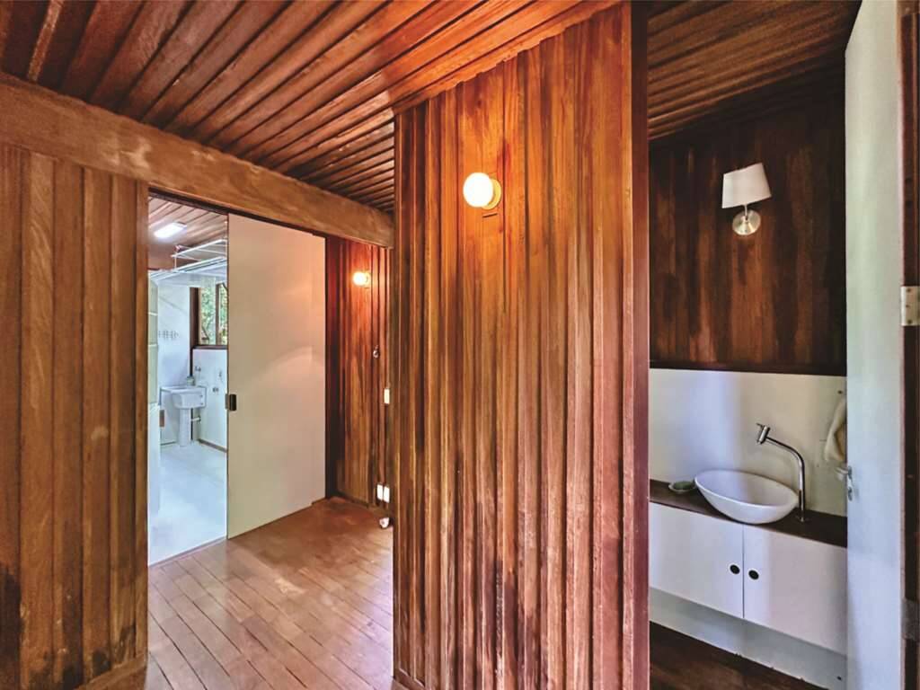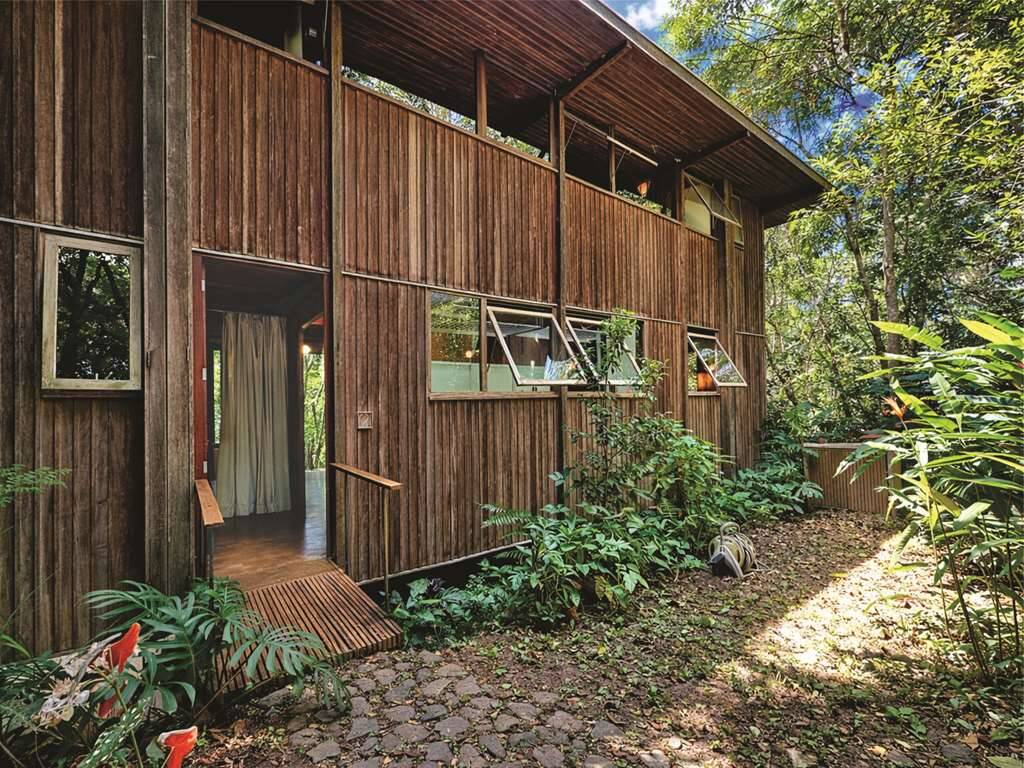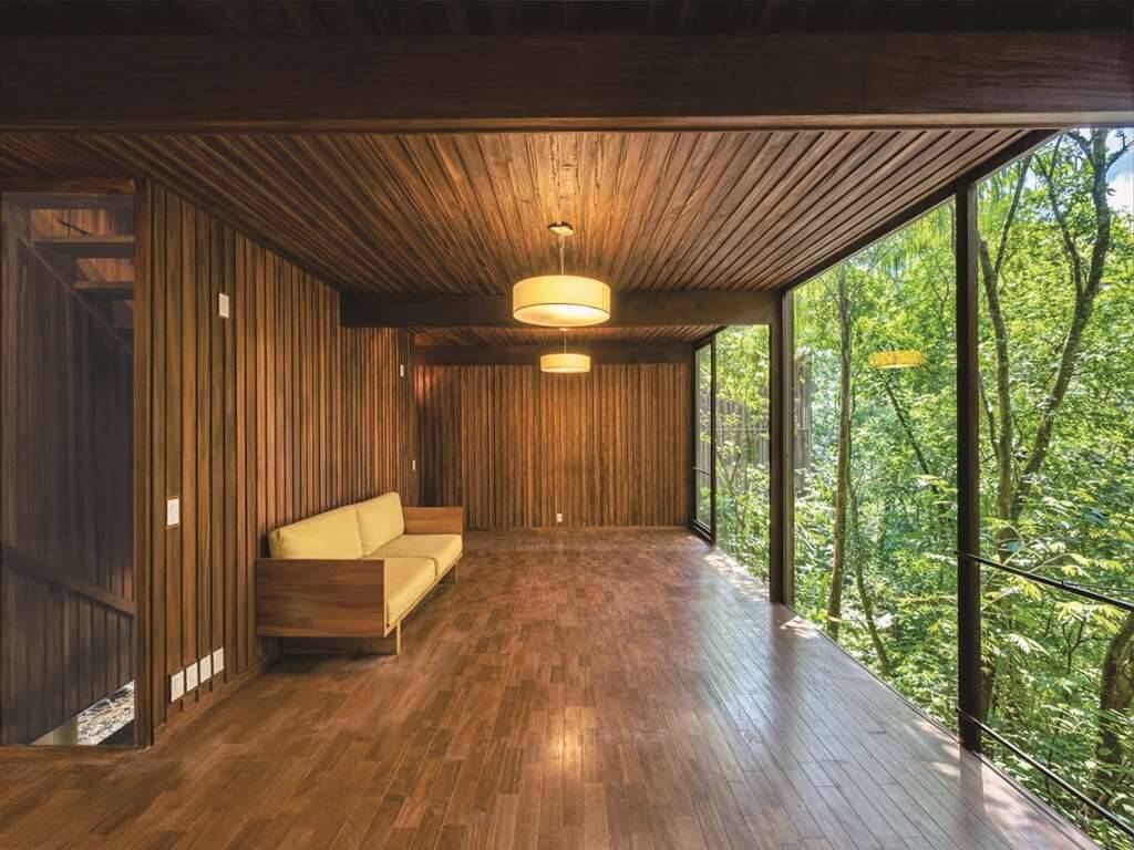 - Materiais com muita madeira e vidro, convidando a natureza tropical exuberante para dentro de casa.