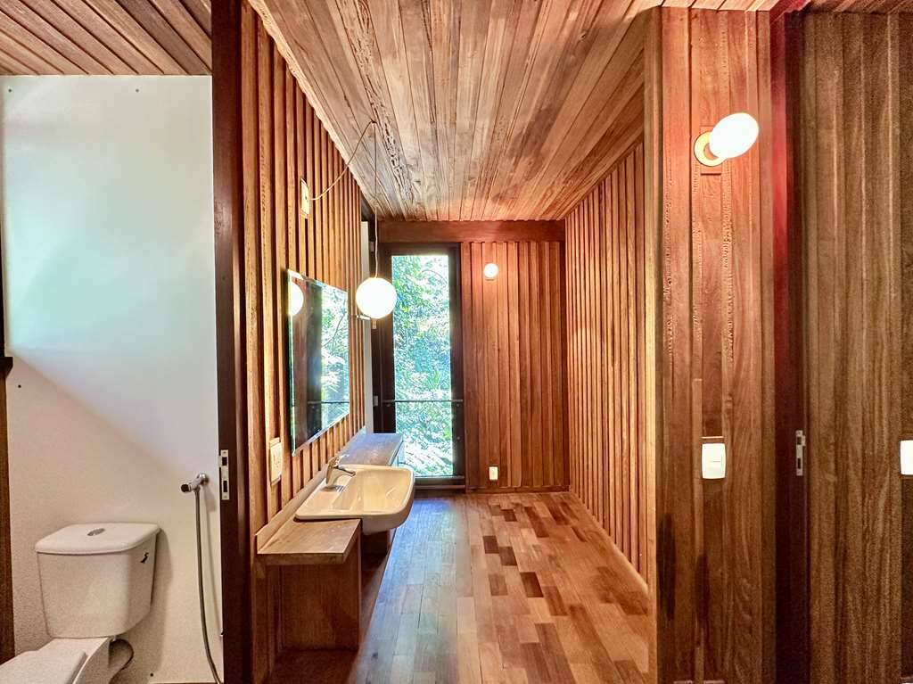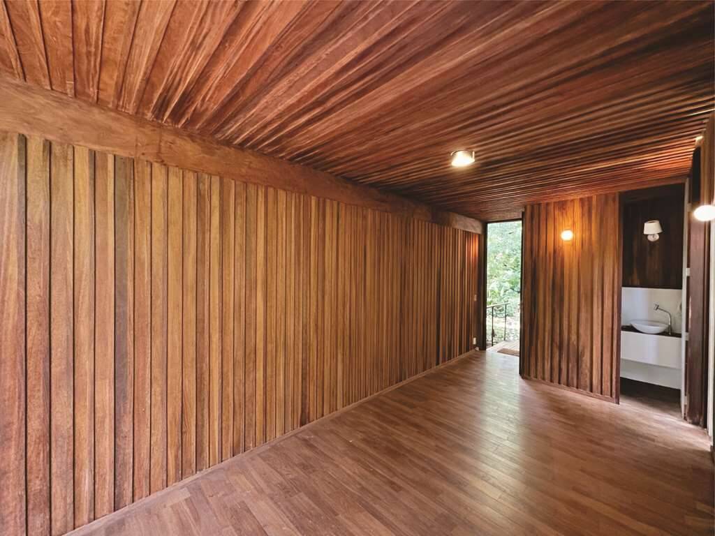 - 4 dormitórios em 2 alas, com armários, portas de correr e paredes envidraçadas voltadas para a natureza.