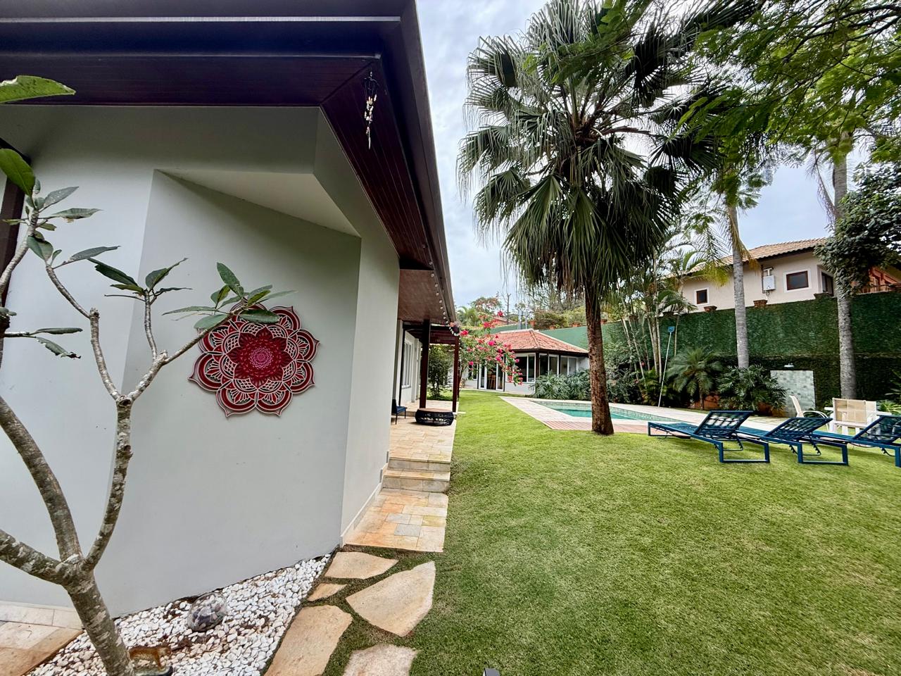A área externa é ideal para momentos de lazer e convivência, contando com piscina, espaço gourmet e pomar, tudo integrado a um paisagismo agradável e funcional. O imóvel dispõe ainda de sistema de energia fotovoltaica, garantindo eficiência energética e sustentabilidade.