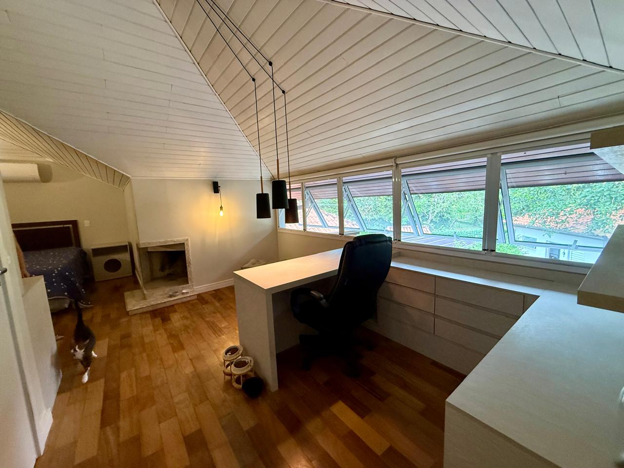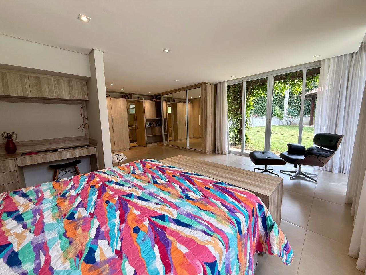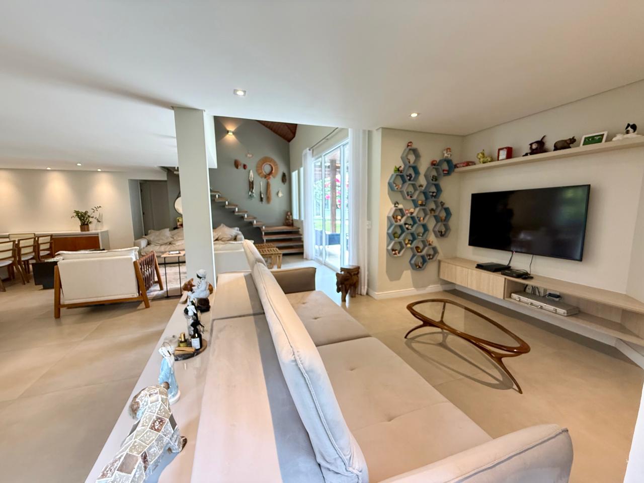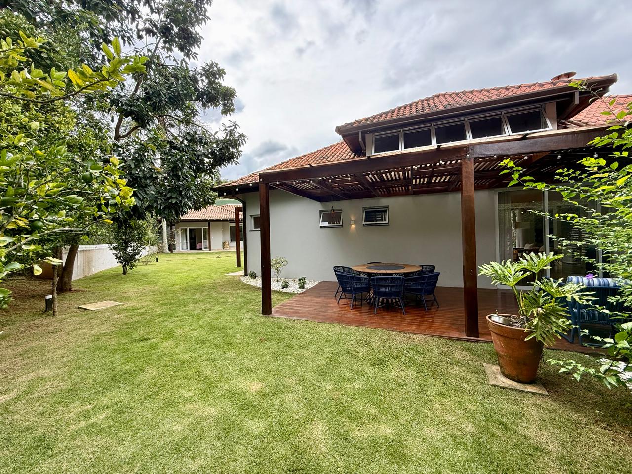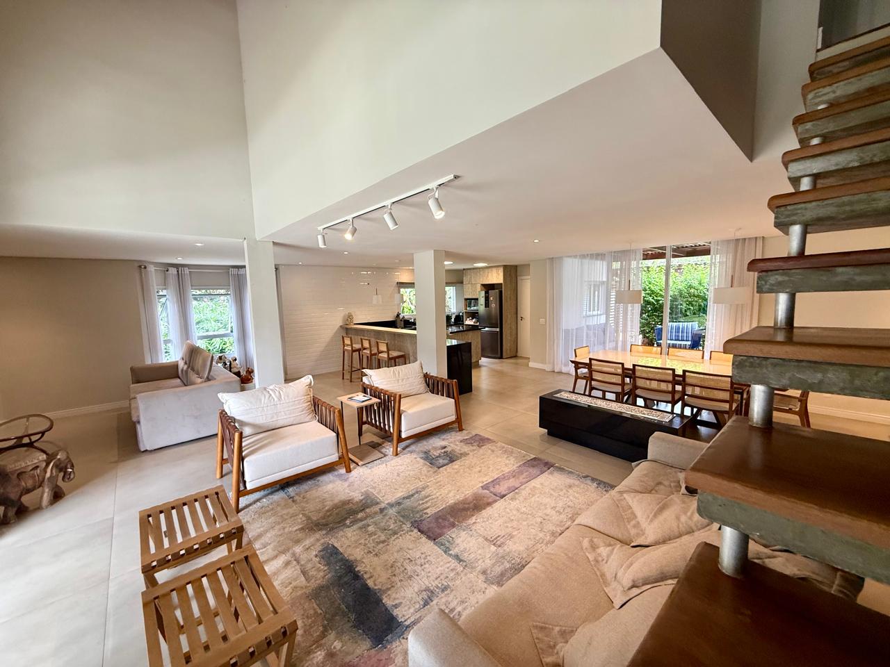 O imóvel está implantado em um terreno amplo de 1.175 m², com 335,70 m² de área construída, e apresenta um projeto que valoriza conforto, integração dos ambientes e contato com a natureza. São 3 suítes espaçosas, além de áreas sociais acolhedoras, com destaque para as lareiras internas e a elegante lareira de chão, que trazem charme e aconchego aos ambientes.