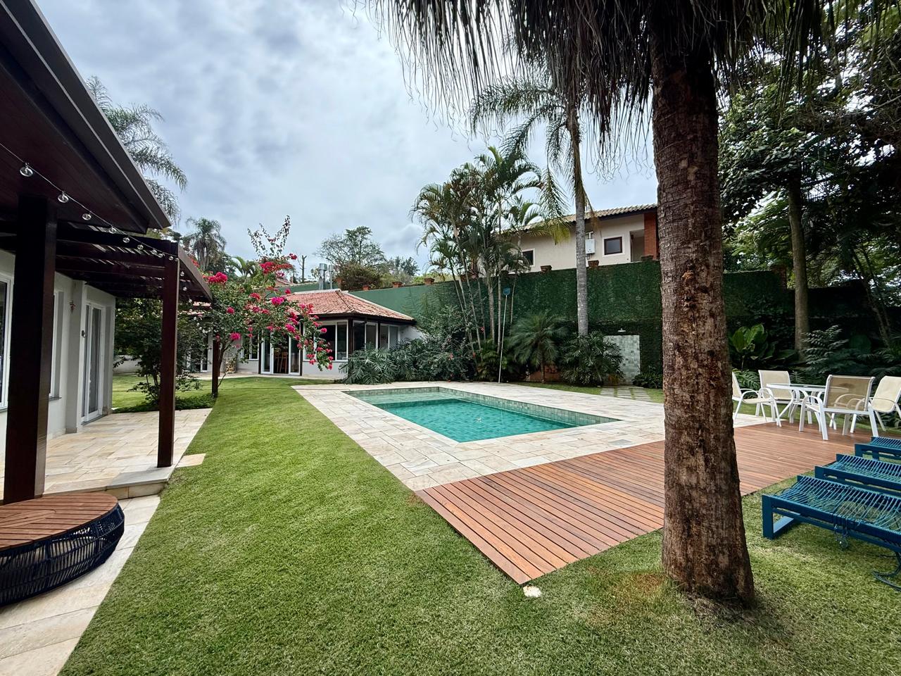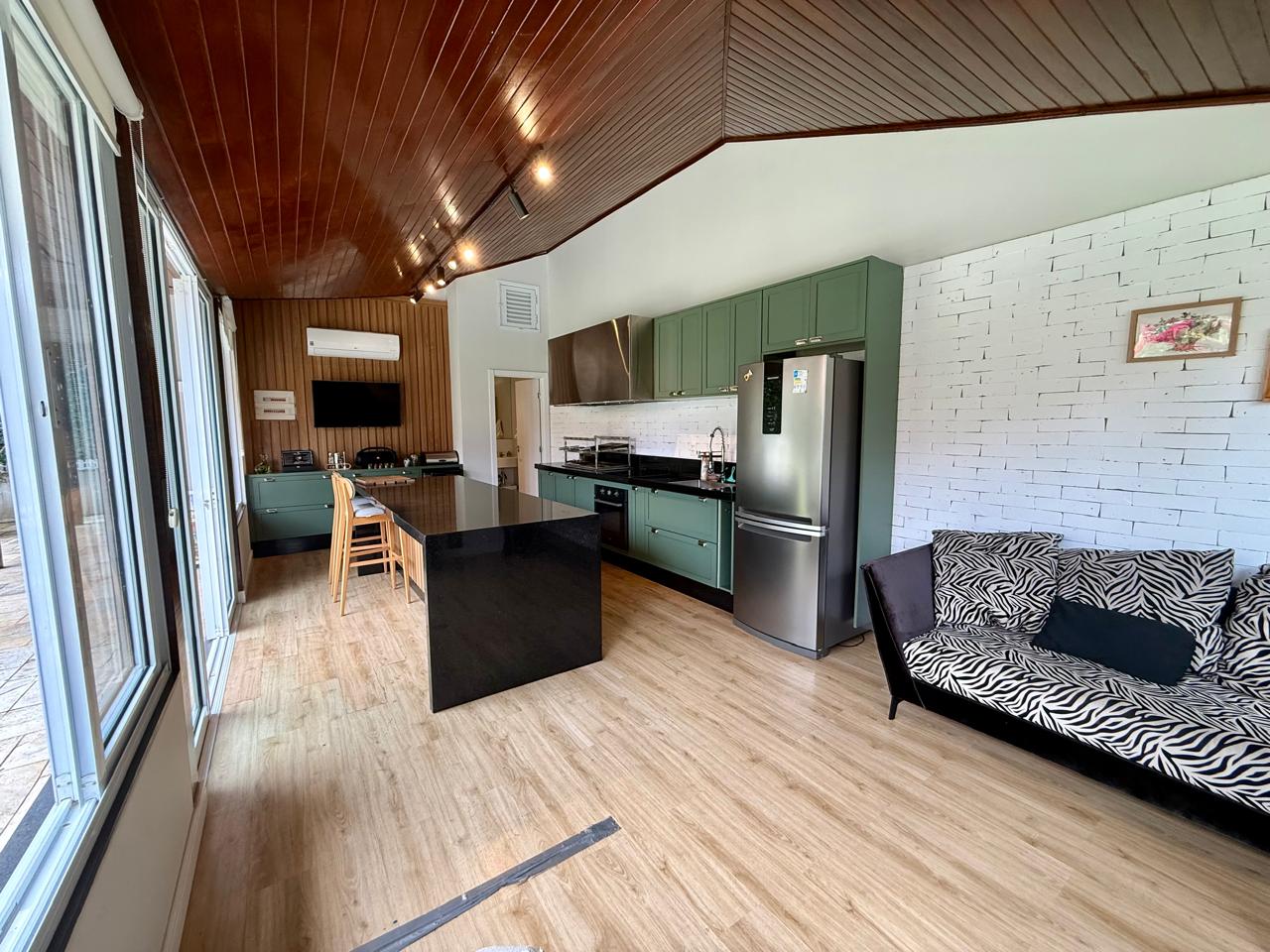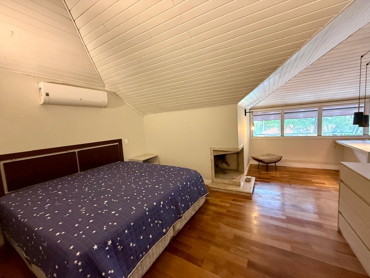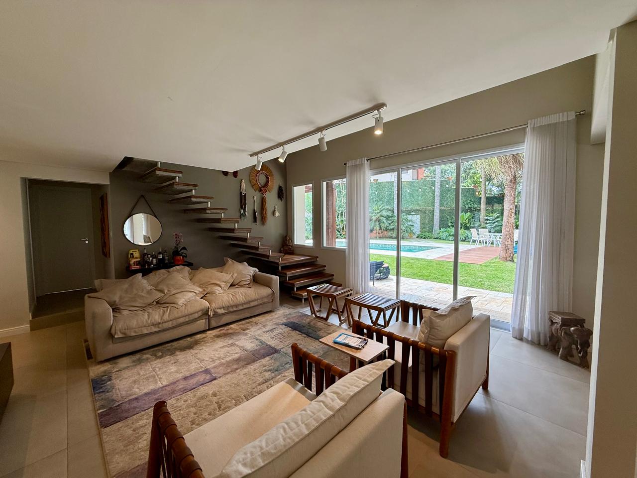 O imóvel está implantado em um terreno amplo de 1.175 m², com 335,70 m² de área construída, e apresenta um projeto que valoriza conforto, integração dos ambientes e contato com a natureza. São 3 suítes espaçosas, além de áreas sociais acolhedoras, com destaque para as lareiras internas e a elegante lareira de chão, que trazem charme e aconchego aos ambientes.