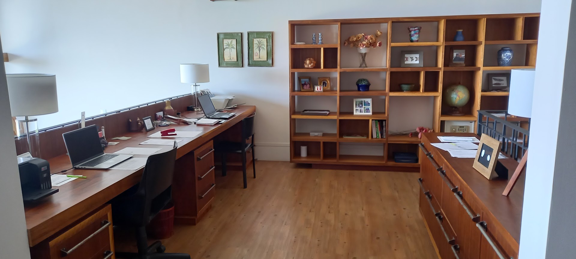 O andar ainda conta com escritório com bancada para duas pessoas, sala de TV e sala de lareira — espaços que unem trabalho, descanso e conforto.