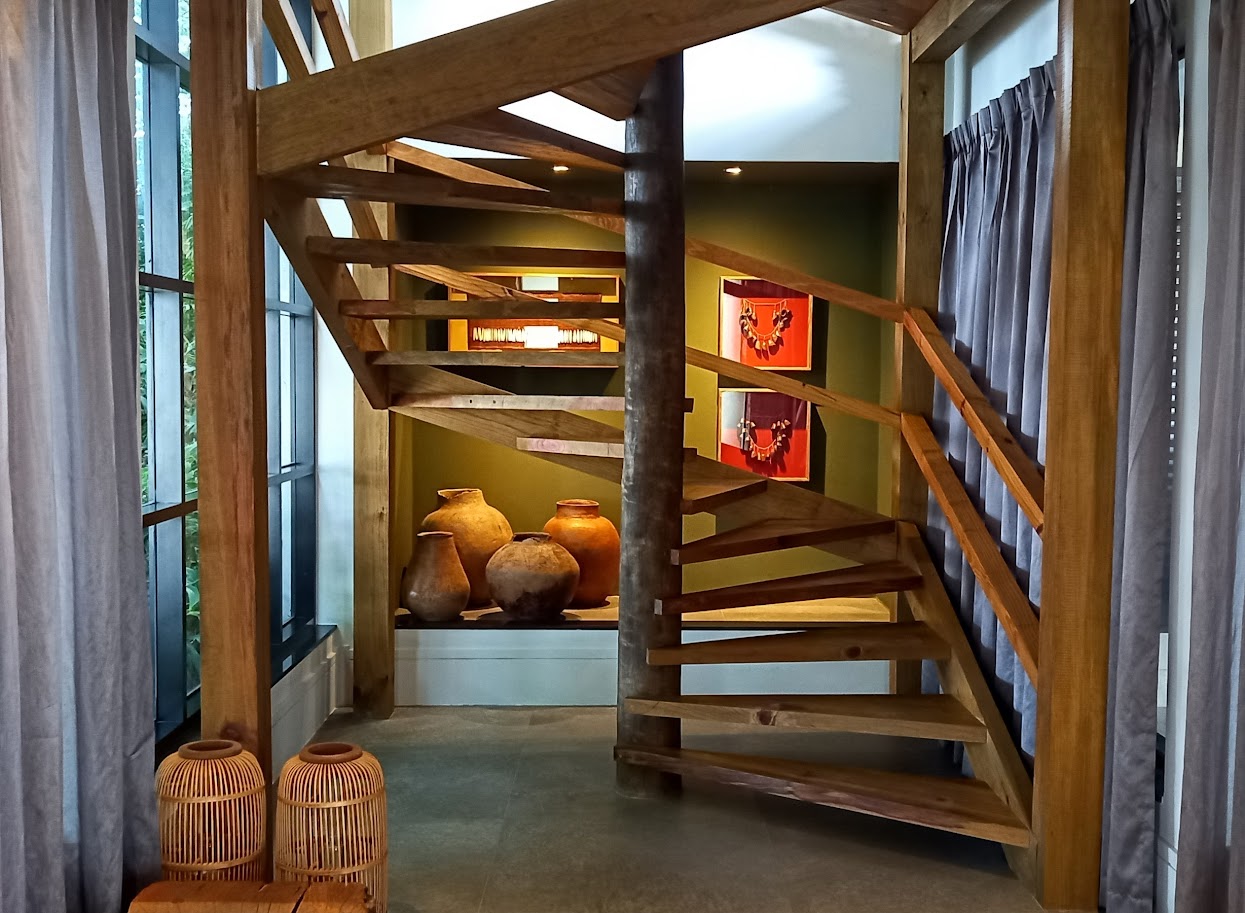 Garagem coberta para até 6 veículos, depósito e hall de entrada com escada em madeira, marcando o início do design refinado que se estende por toda a casa.