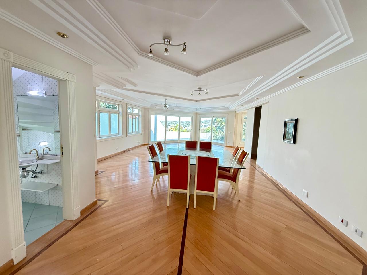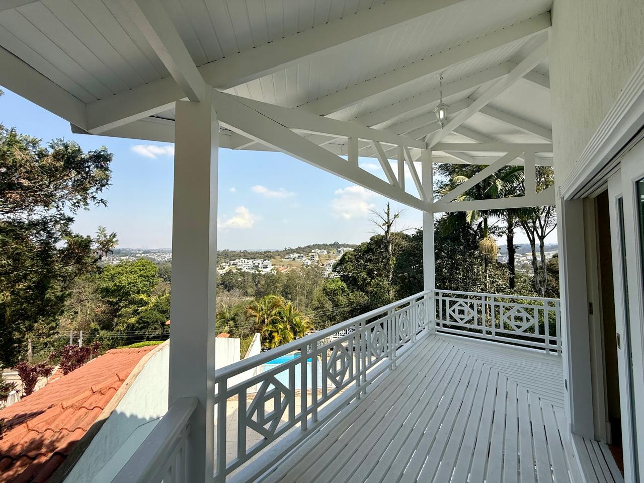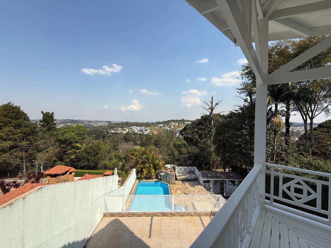 Localizado em uma parte privilegiada do condomínio, e com uma vista maravilhosa, essa bela casa conta logo de cara com uma piscina com cascata na entrada do imóvel o convite ideal para aqueles dias quentes onde você e sua família e amigos vão curtir e se divertir , já no que diz respeito ao interior da casa você encontra uma linda e espaçosa sala com 3 ambientes, sala de estar ,jantar e tv, cozinha com armários planejados, lavanderia , quarto de empregada com banheiro, 2 suítes e um elevador para o piso superior, onde temos uma suíte máster com ar condicionado e lareira tudo isso com uma das melhores vistas do condomínio.